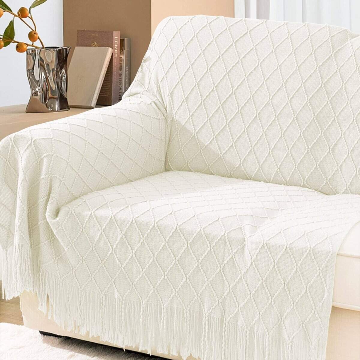 5. IDEAS DE REGALO: Los patrones de diamantes tejidos especiales agregan un toque único a tu habitación y la gente la usa como chal. Muy adecuado para propietarios con buen gusto. Manta de punto para mujeres, clásica pero no demasiado chirriante como regalo de inauguración. Consejos Debido a la iluminación, configuraciones de pantalla o resoluciones diferentes, ocurre la diferencia de color. Estamos ansiosos por mostrar el color. Para hacerlo, una de las imágenes muestra la diferencia de color en diferentes iluminaciones. Espero que estas instrucciones te ayuden a comprar una manta.