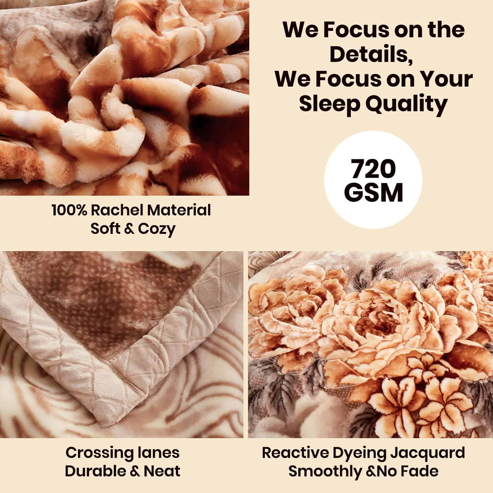 La manta de mink MODUSKYE está diseñada con patrón de Peonías y está hecha de material de felpa de alta calidad que la hace suave y perfecta para el uso durante el otoño e invierno. Esta manta pesada de felpa de 2 capas es ligera y cálida, proporcionando una sensación acogedora a tu piel. Con un diseño elegante de cuadros, esta manta reversible cuenta con un aspecto clásico que realza la ropa de cama y la decoración del hogar. Además, esta manta versátil se puede utilizar como cubierta, manta para la cama, manta para uso en exteriores e interiores, decoración del hogar y manta para mascotas. Es un regalo perfecto para días festivos, cumpleaños, bodas, aniversarios, regalos de inauguración de la casa y deseos de pronta recuperación. La manta de mink es lavable a máquina y a mano, pero se recomienda lavarla por separado en agua fría para evitar posibles daños. Seca a baja temperatura y no uses blanqueador para mantener la calidad de la manta. Actualiza tus mantas con esta lujosa y elegante manta de mink MODUSKYE.