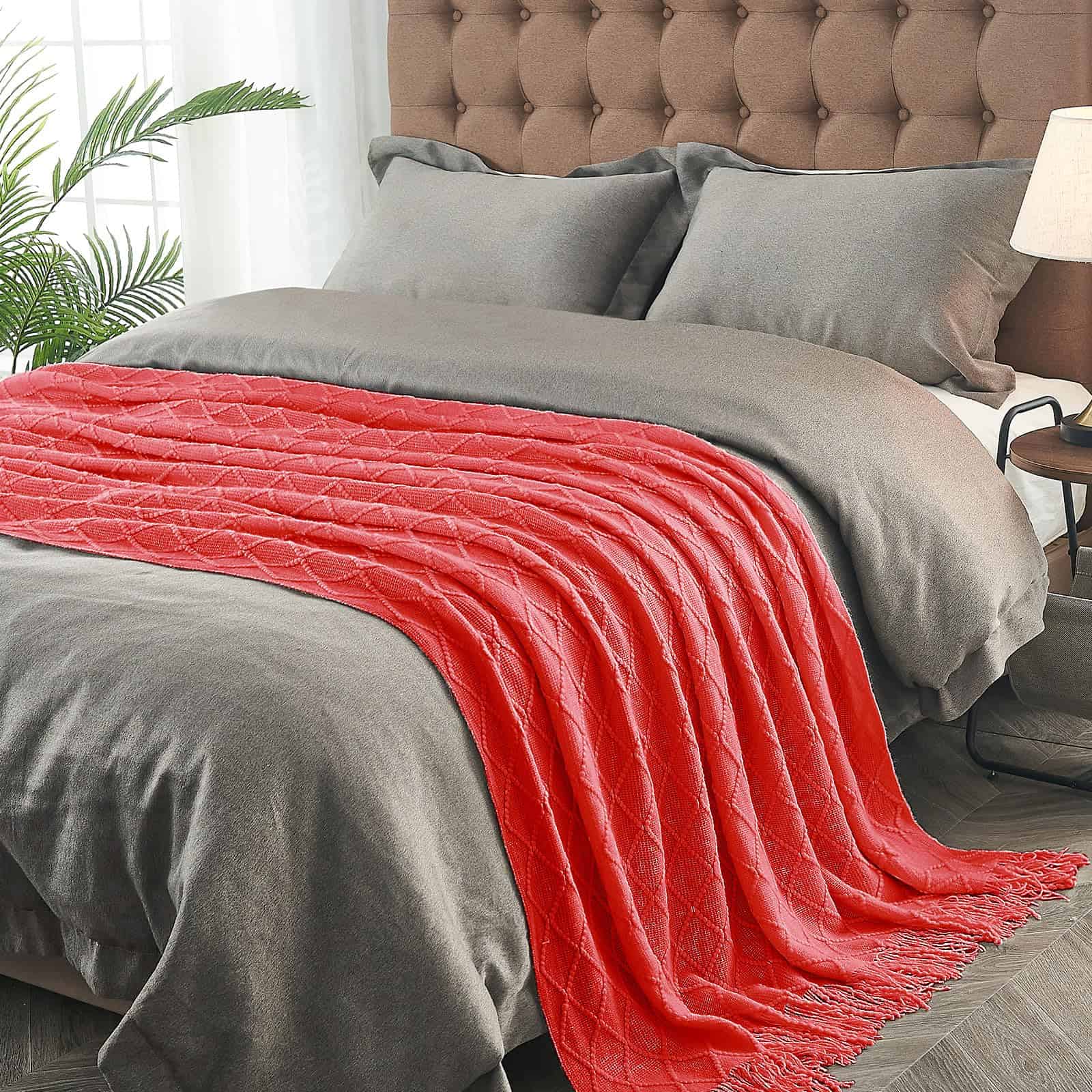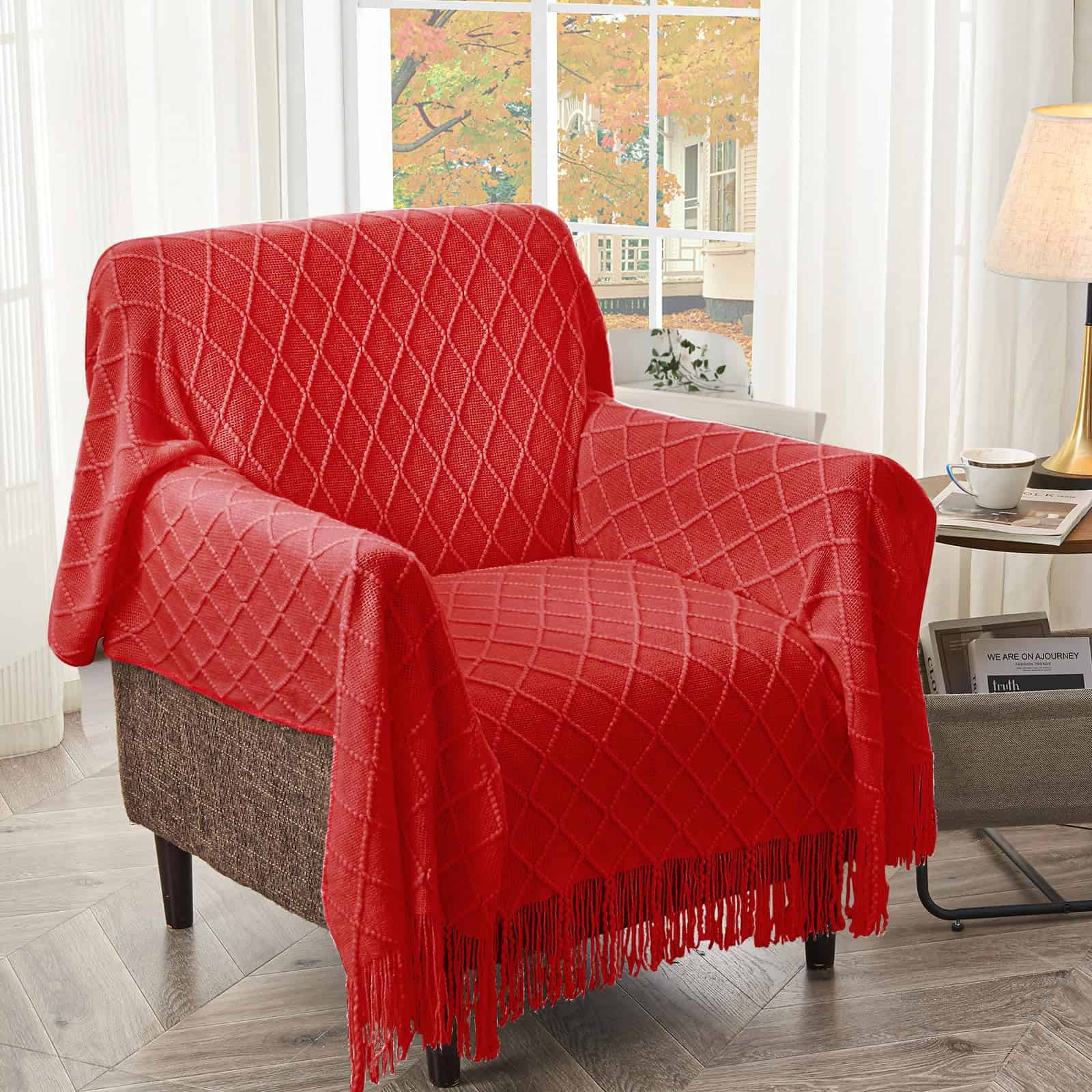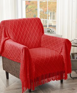 Mantas de Regalo Tejidas a Mano para Sofá y -Rojo