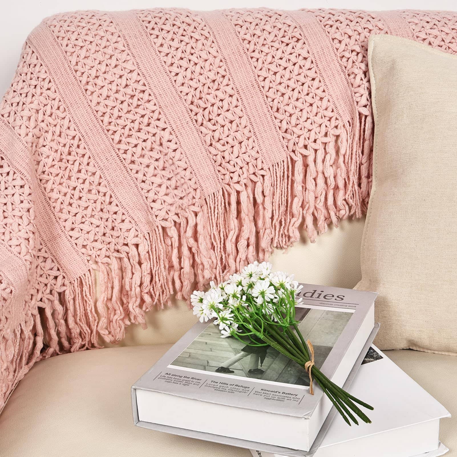 Mantas de Tejido Boho para Sofá y Cama U.EHome – Super Suave Manta de Punto con Borlas, Mantas Cálidas Decorativas y Livianas para Sofá, Sofá, Decoración del Hogar, Regalo – 50″ x 60″ Rosa – Las mantas de tejido acrílico 100% adoptan la tecnología de tejido GSM 300, que tiene un tacto más suave y esponjoso que las mantas y mantas ordinarias, ofreciéndote la sensación de fibras de lana de cordero, es una opción perfecta para mantas cálidas y suaves livianas, excelente para combinar con otros artículos de tendencia en invierno. Esta manta de punto para sofá muestra una muestra impecable de artesanía a través de características de diseño elegantes. Las texturas ridges proporcionan un ritmo visual. Las borlas encantadoras ofrecen un toque elegante para decorar un sofá. Perfecto para acurrucarse en el sofá, la cama como decorativo, cine en casa, parque, casa de campo o regalo de Navidad, acampando para cualquier ocasión. NO APTO PARA USO DE MASCOTAS. El lavado por separado, ciclo delicado y planchado suave son métodos comúnmente utilizados, que funcionan perfectamente para nuestra manta tejida. Nuestras suaves mantas podrían lavarse bien. La impresión ecológica no se desprende y es a prueba de polvo, transpirable, resistente a la luz. Nos comprometemos a proporcionar un servicio de devolución y reemplazo de 1 mes y servicio al cliente gratuito de por vida.