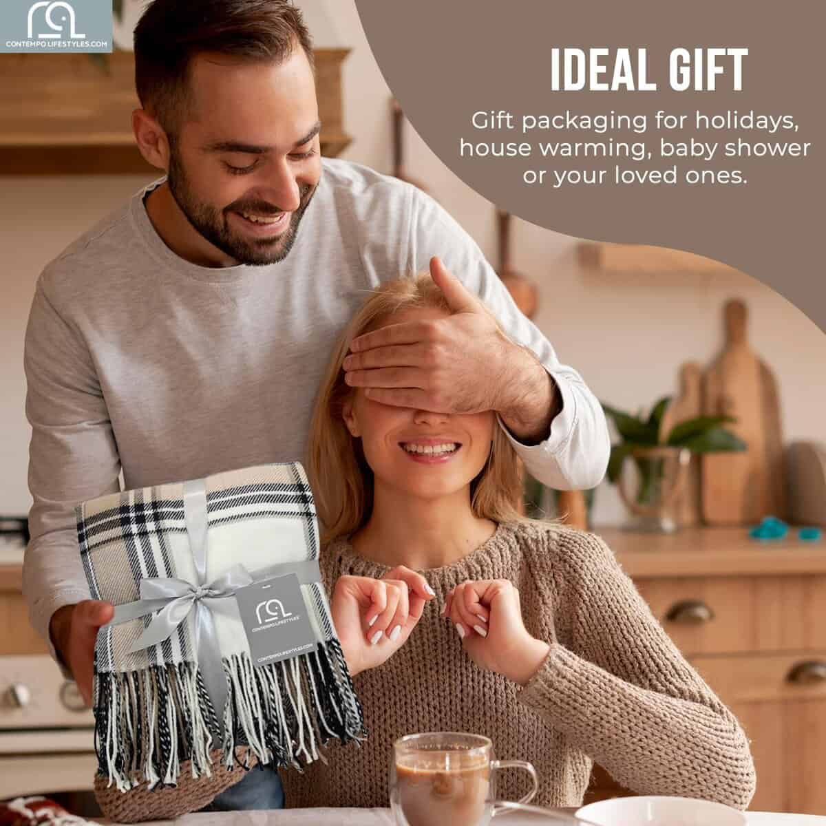ORIGINAL GIFT: ¡Pide esta encantadora manta de cuadros buffalo para ti o como una idea de regalo de inauguración de una casa para un ser querido, y puedes estar seguro de ganar su aprecio! ¡La manta incluye un elegante empaque de cinta, ¡solo esperando que pongas tu nombre en él!