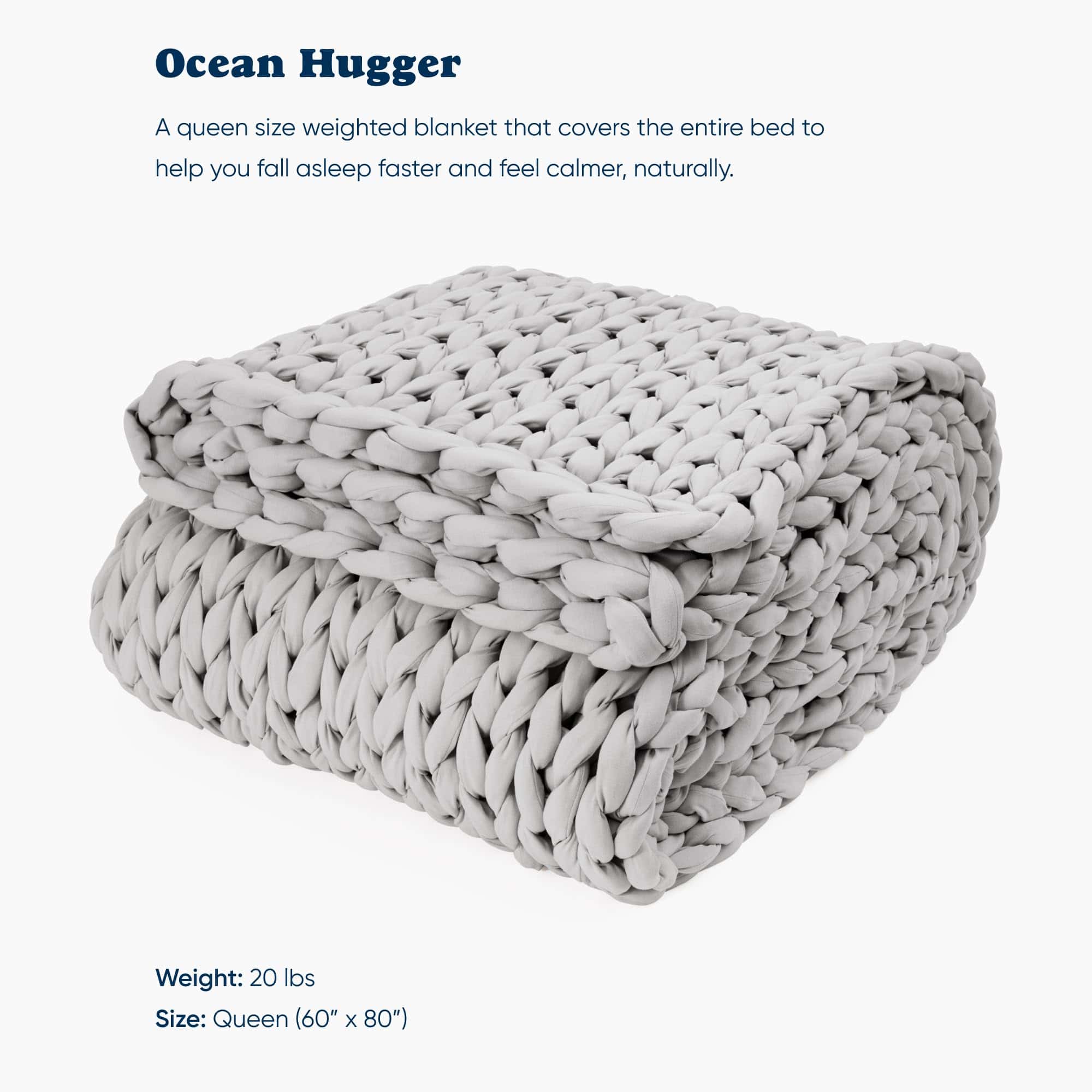 Mantas Ponderadas Bearaby Tamaño Queen – Mantas Ponderadas Tejidas a Mano – Mantas Ponderadas de Enfriamiento Para Adultos – Manta Ponderada Lavable de 20 lbs – Manta Pesada Queen Tamaño 60�x80� – Gris Moonstone. Conoce al Abrazo del Océano: una manta ponderada tamaño queen diseñada para ayudarte a dormir mejor al colocar peso calmante y suave sobre todo tu cuerpo. Hecha de tela refrescante reciclada que está certificada por GRS y OEKO-TEX Standard 100, el Abrazo del Océano es suave, gentil y respetuoso con el medio ambiente. El diseño patentado tejido a mano distribuye el peso de manera uniforme utilizando una tela suave y pesada sin cuentas de vidrio o plástico en el interior, convirtiendo nuestra manta ponderada de enfriamiento en una opción más sostenible y efectiva que las mantas ponderadas tradicionales. U.S. 10,835,708; U.S. 11,260,200; U.S. 11,806,480. Diseñado para la relajación y la comodidad, el Abrazo te ayuda a descansar mejor después de un largo día, permitiéndote dormir pacíficamente durante toda la noche. Esta suave manta ponderada cubre toda tu cama queen y puede ser compartida por dos durmientes (¡o más para ti!). Las mantas ponderadas de punto grueso ofrecen todos los beneficios de las mantas ponderadas pesadas sin el calor, permitiendo que el aire fluya a través de los bucles. Puedes combinar tu manta ponderada de tamaño full con una sábana o edredón para mayor calidez, convirtiéndola en un buena opción de mantas de invierno. Nuestra manta ponderada tamaño queen también se puede usar por sí sola como una manta ponderada de enfriamiento. Dado que el Abrazo es una manta ponderada sin cuentas, se puede lavar y secar en lavadoras y secadoras de tamaño comercial, convirtiéndola en una manta ponderada lavable y duradera en la que puedes confiar durante muchas noches por venir. Algunas mantas ponderadas están diseñadas para adaptarse a tu tamaño corporal individual, pero si estás buscando mantas pesadas en tamaño queen, nuestro Abrazo del Océano es una manta ponderada tamaño queen (20 lbs) diseñada para cubrir toda una cama queen. Tejida a mano con cuidado, nuestra manta ponderada en tamaño queen está lista para ayudarte en tu camino hacia una mejor noche de sueño!