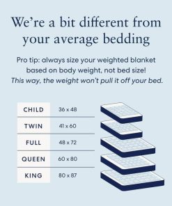 3. Disponible en tamaños de Niño, Individual, Doble, Queen y King, y pesos que van desde 10 lbs hasta 25 lbs, ¡hay una opción para Niños y Adultos! Consulta nuestras tablas de tamaños y pesos para descubrir la manta ponderada de algodón ideal para cualquier temporada.