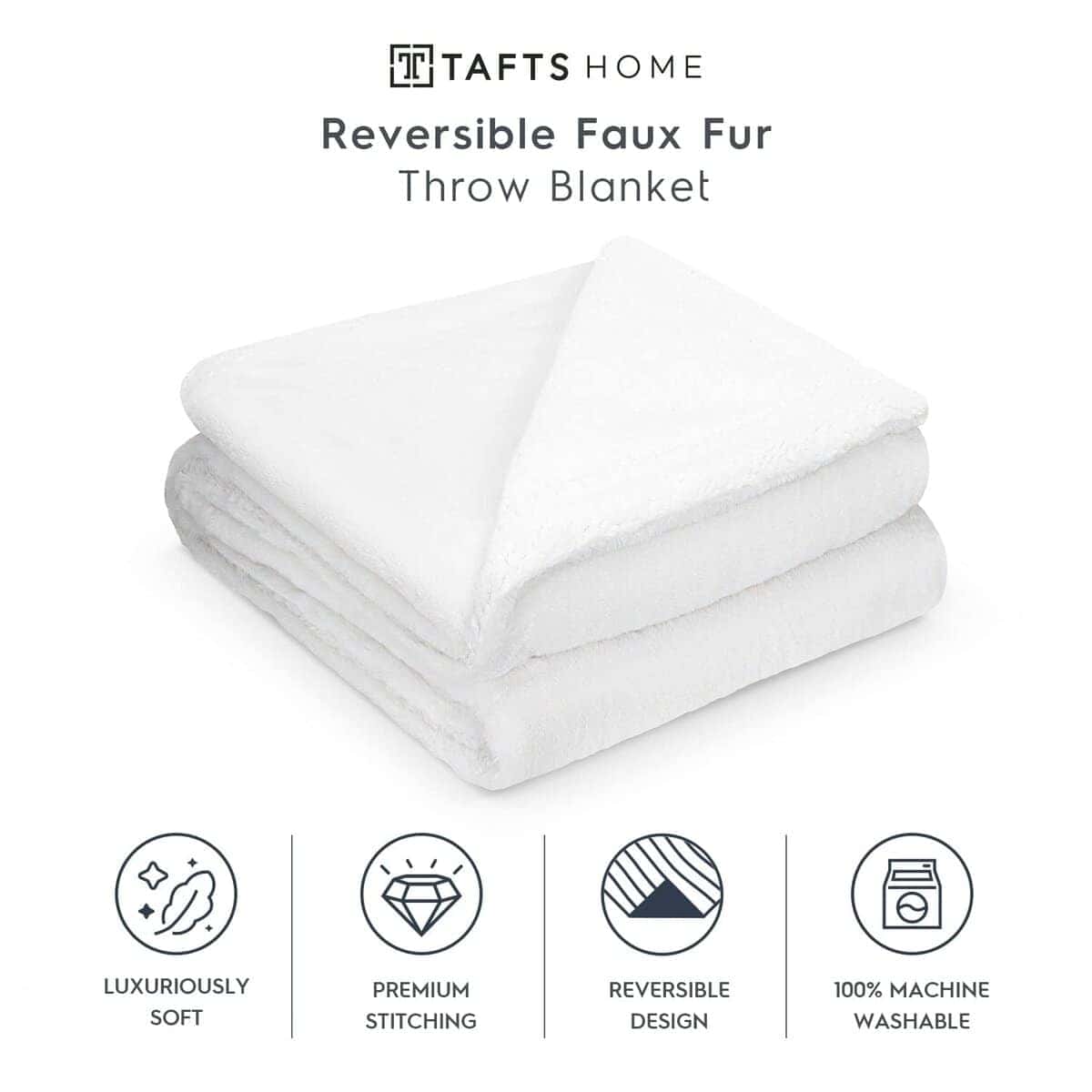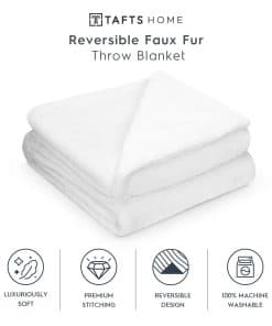 1. 580 GSM PIEL SINTÉTICA/SHERPA- La exquisita manta de Tafts Home está hecha a medida para ser el equilibrio perfecto entre confort y lujo. 2. REVERSIBLE – La manta de lujo de Tafts Home es completamente reversible con una lujosa piel sintética y otra en sherpa súper suave. 3. TODAS LAS ESTACIONES – La manta de terciopelo y lana super suave de Tafts te mantendrá caliente en otoño/invierno y liviana y aireada para primavera/verano. 4. MULTIUSO – La lujosa manta de Piel Sintética/Sherpa de Tafts Home se puede usar mientras tomas una siesta o ves la televisión en tu sofá o te acurrucas en tu cama. Es el regalo perfecto para dar o recibir. 5. Lavable a máquina- Lavar a máquina en frío por separado. Usar blanqueador sin cloro si es necesario. Secar en secadora a baja temperatura. No planchar. Disfruta del lujo de la piel sintética y la comodidad.