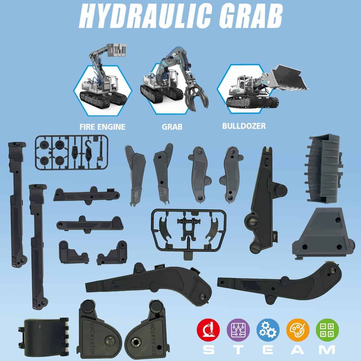 2. Impulsado por hidráulica El juguete de ingeniería hidráulica no necesita pilas ni motores, convierte la presión del agua en energía cinética, y puede controlar fácilmente el brazo mecánico para cavar, levantar y realizar otras funciones.