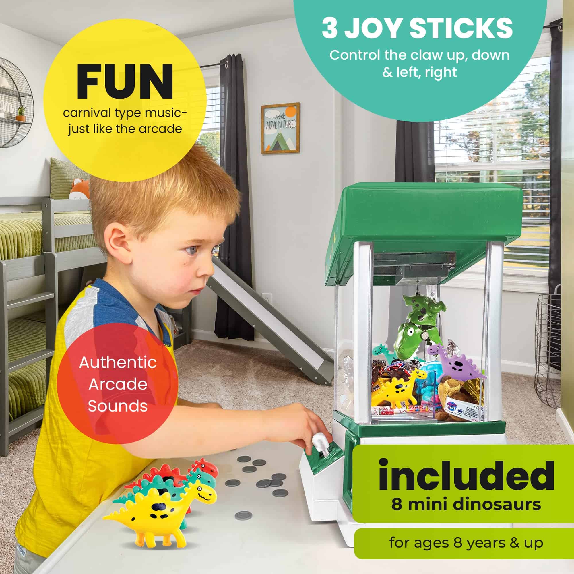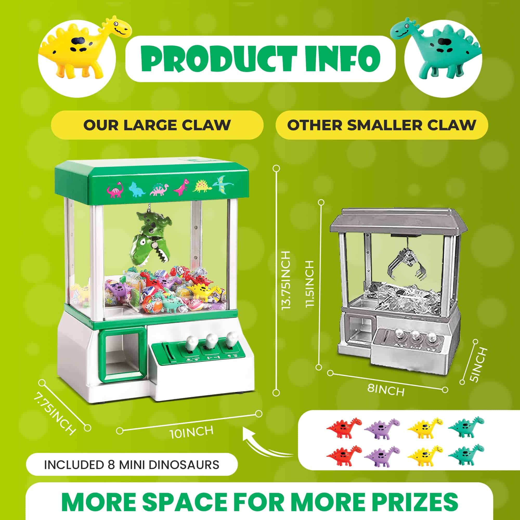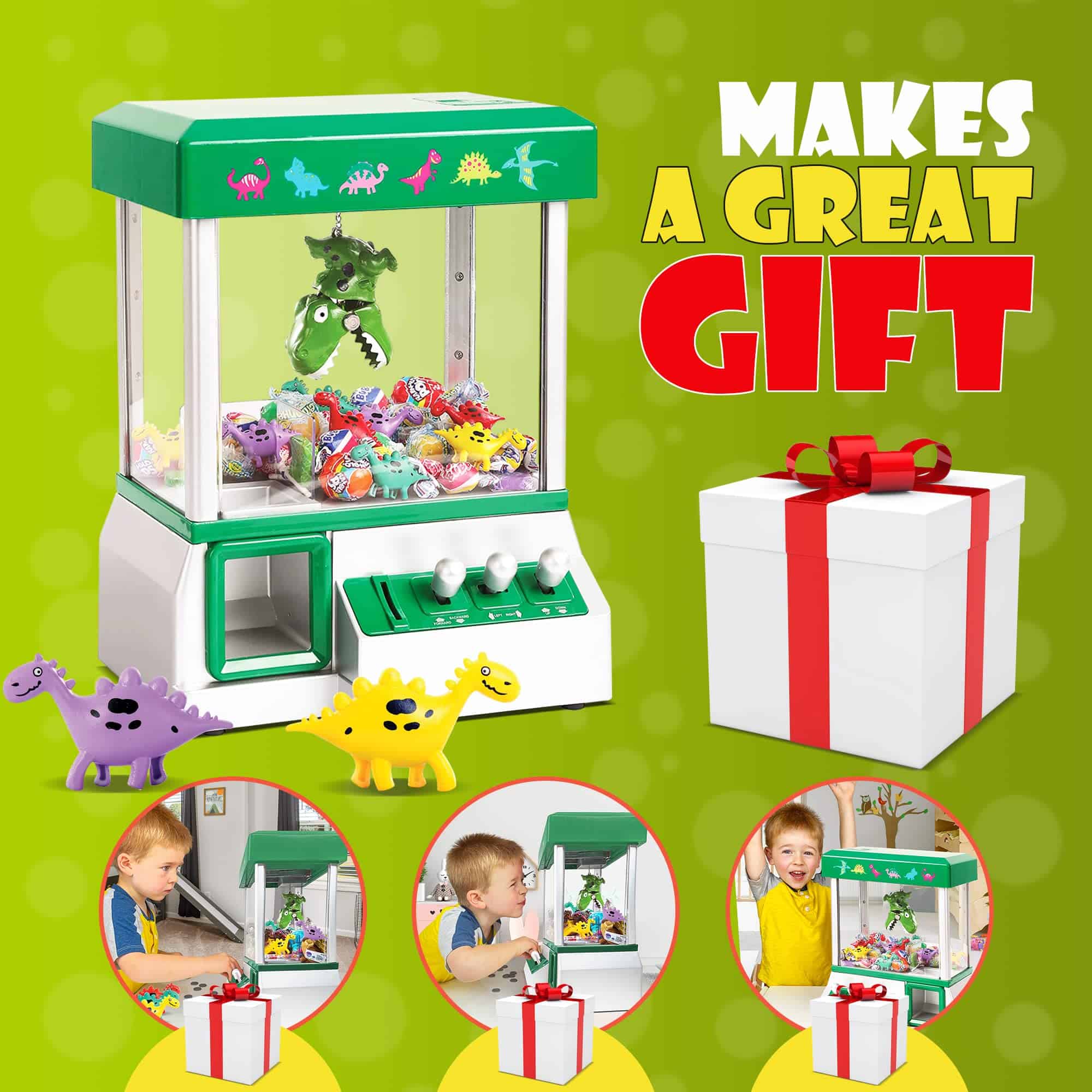 ¿Tus hijos se están aburriendo de los juegos de siempre en las fiestas? Ya sea una barbacoa o un cumpleaños, a los niños les encanta participar en todo tipo de actividades durante las reuniones. Sin embargo, fácilmente pierden interés y siempre buscan cosas nuevas que hacer. Para tu próximo encuentro, es mejor estar preparado. Los juegos clásicos, como ponerle la cola al burro y pegarle a la piñata, son cosa del pasado. Necesitas un juego nuevo y único que fascine a los niños. ¡Con la Máquina Arcade de Garra de Dinosaurio de Bundaloo, tus hijos disfrutarán de horas de diversión sin parar! Reminiscente del juguete clásico de garra encontrado en los arcades, nuestro producto es un gran juego de fiesta que los niños amarán absolutamente. Les pone a prueba sus habilidades para resolver problemas y los mantiene ocupados todo el día. Llena con todo tipo de treats como dulces, chicles y mentas, y observa cómo tus pequeños enloquecen por su premio ¡Nuestra máquina de garra de dinosaurio viene con 30 fichas reutilizables, solo se requiere una para activarla. Usa las 3 palancas en la parte delantera para controlar la garra única. Mueve el mecanismo de agarre hacia adelante y hacia atrás, izquierda y derecha, y arriba y abajo para obtener el treat. No solo para fiestas y reuniones familiares, este artículo también es un regalo de vacaciones o cumpleaños genial y único. Dáselo a amigos, familiares e incluso compañeros de trabajo que tengan niños. ¡Haz que sea el punto culminante de cualquier ocasión! Aquí tienes características adicionales que te ayudarán a tomar la decisión correcta: – Requiere 3 pilas de tamaño «D» que no están incluidas – Puede utilizarse para la mayoría de dulces/treats o juguetes de hasta 2×2 pulgadas de ancho – Dimensiones: Longitud 10 x Ancho 8 x Altura 13.5 pulgadas ¡Bundaloo está aquí para ti! Estás respaldado por una garantía de 6 meses. Trae de vuelta la era dorada de los juegos y muestra a tus hijos el verdadero significado de la diversión. ¡Agrega nuestra Máquina Arcade de Garra de Dinosaurio a tu carrito HOY!