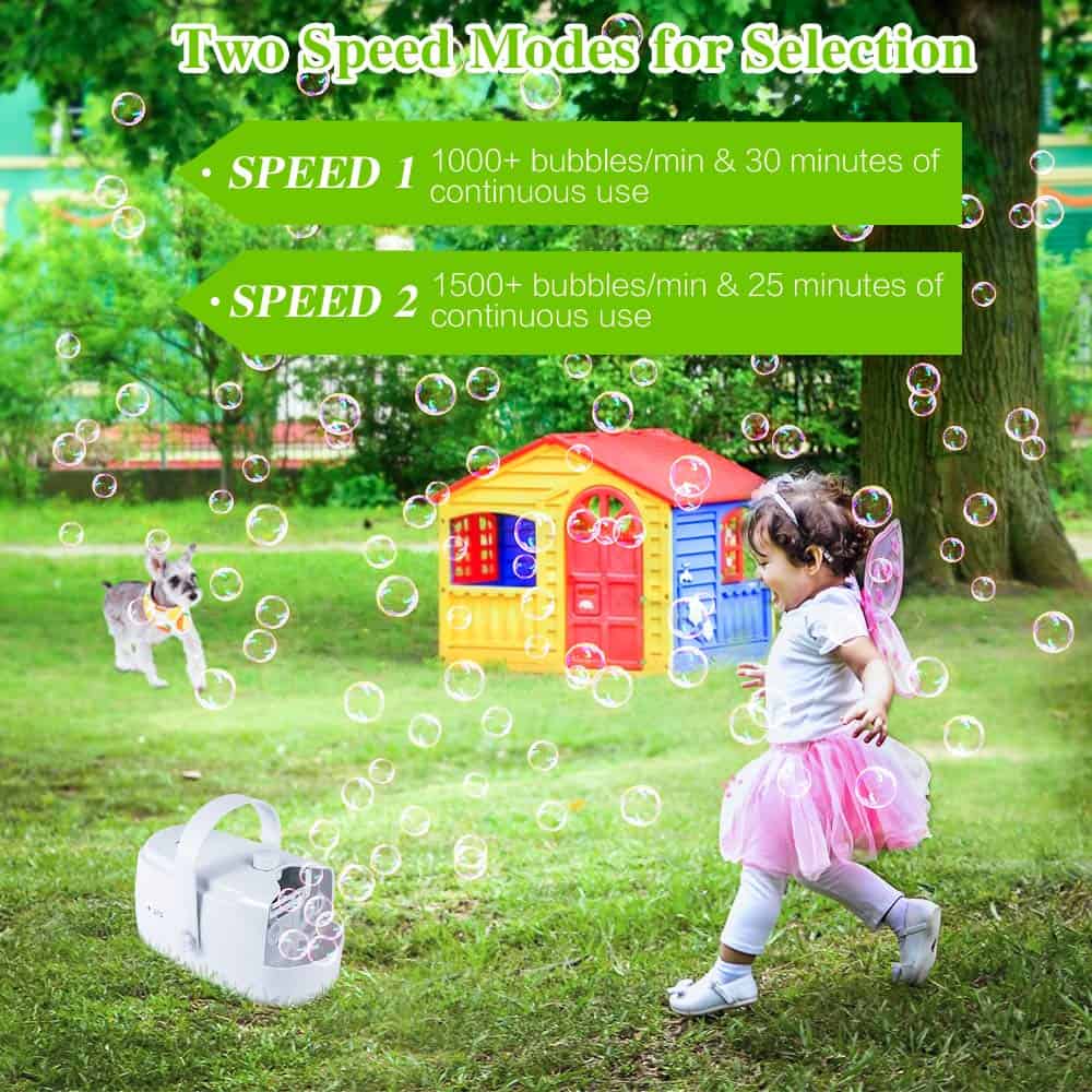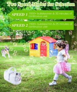La Máquina de Burbujas EASYCEL es definitivamente una buena elección de regalos para niños y mascotas, que produce miles de burbujas voladoras para crear un mundo de burbujas romántico y colorido para niños y mascotas. Es un creador de atmósfera para cualquier reunión interior o exterior, como festivales y fiestas de cumpleaños, escenarios, bodas, barbacoas, bailes de graduación, etc. Es un regalo perfecto para familia y amigos, que será una gran sorpresa. Especificaciones: 1. Toca la varita por accidente cuando la máquina está funcionando, la varita se detendrá automáticamente para evitar lastimar tu dedo 2. Salida de energía: DC9V, 1.2A 3. Consumo de energía: Máximo 13 W 4. Baterías: 6 pilas de tamaño C 5. Distancia de rociado: 3-5M 6. Capacidad del tanque: 0.4L 7. Material: ABS 8. Dimensiones: 245 x 167 x 148 mm (L x A x A) 9. Peso: 834g 10. Dos Modos de Velocidad para Soplar Burbujas: Alta / Baja Velocidad Atención: 1. No llenar el depósito por encima del nivel máximo indicado. 2. Mantén los puertos de entrada de aire libres de obstrucciones. 3. ¡Mantén este dispositivo alejado de la lluvia y la humedad! ¡Desconecta el cable de alimentación antes de abrir la carcasa! 4. Nunca apuntes la salida directamente a las personas. 5. Ten cuidado: los alrededores se vuelven resbaladizos debido a las burbujas. Lista de paquetes: 1 x Máquina de Burbujas EASYCEL 1 x Adaptador de corriente 1 x Manual de usuario Garantía: Garantía de un año con servicio postventa de alta calidad.