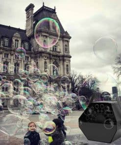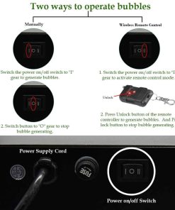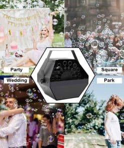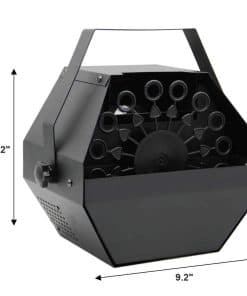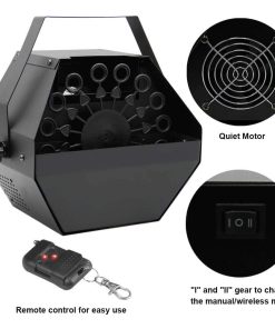 Máquina de Burbujas FORUP – ¡El Mejor Compañero de Fiestas! Cómo Usar: 1. Vierta líquido para burbujas (no incluido) en el depósito de líquido. Tenga en cuenta que el tipo de líquido para burbujas utilizado puede afectar la cantidad de burbujas que se producen. 2. Enchufe el cable de alimentación en un enchufe eléctrico con toma de tierra. 3. Puede optar por comenzar a generar burbujas de forma manual o utilizando el control remoto inalámbrico. Manualmente: Mueva el interruptor de encendido/apagado a la posición «I» para generar burbujas. Mueva el botón a la posición «O» para detener la generación de burbujas. Control Remoto Inalámbrico: Mueva el interruptor de encendido/apagado a la posición «II», luego el modo de control remoto se activa. En este modo. Presione el botón Desbloquear del control remoto para generar burbujas. Y presione el botón de bloqueo para detener la generación de burbujas. Especificaciones: Voltaje: CA 110V/60Hz Potencia: 20-30w Capacidad del tanque de fluido: 1L Tamaño L x W x H: 9.25 x 8.27 x 9.84 pulgadas (23.5x21x25 cm) Peso: 3.85 libras (1.75 kg) Modo de Control: Automático/Control Remoto Paquete: 1 máquina de burbujas+1 Control remoto El control remoto contiene una batería de níquel-metal hidruro de AA