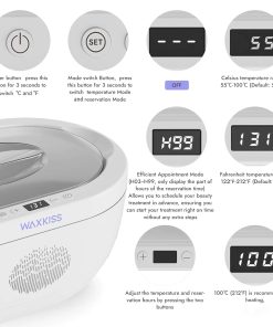 Máquina de Cera de Parafina para Manos y Pies con 3 paquetes de Recambios de Cera de Parafina sin Fragancia, 3000 ml Máquina de Cera de Parafina para Manos para Reservación de Baño de Parafina. La máquina de cera de parafina segura y duradera tiene una capacidad de 3000 ml para uso en manos o pies, y el recipiente interno de plástico está hecho de material retardante de llama PP para resistencia y durabilidad. Garantiza un uso seguro y duradero, brindándole tranquilidad y beneficios térmicos instantáneos de baños de parafina en casa. La máquina de cera de parafina para manos y pies cuenta con dos modos de calentamiento, un modo de ajuste manual de temperatura y un modo de calentamiento de reservación (calentamiento y enfriamiento inteligentes, disponible después de una reservación de 3 horas), control de temperatura preciso con pantalla de visualización digital, puede calentar fácilmente los recambios de cera de parafina para satisfacer sus necesidades deseadas. Hidrata y suaviza eficazmente las manos y pies ásperos. La cera de parafina del kit utiliza materias primas de primera calidad, sin fragancias, que pueden aumentar efectivamente las capacidades de retención de calor y las propiedades hidratantes de la cera, hacer que la temperatura de la cera sea más duradera, mejorar la resistencia y extensibilidad de la cera, lo que facilita que la cera se desprenda por completo. Si encuentra algún problema, como que se haya abierto la etiqueta de sellado, o que falten accesorios o fallas funcionales, envíenos un correo electrónico, se proporciona servicio al cliente las 24 horas, los 7 días de la semana y garantía de fábrica de un año. Resolveremos el problema de inmediato o le reembolsaremos en cualquier momento. Después de que la cera se haya derretido por completo, tiene la flexibilidad de reducir la temperatura a un nivel que encuentre cómodo y adecuado para sus necesidades. Además, si es nuevo en el uso de la cera de parafina, le recomendamos comprar una caja adicional de cera de parafina, ya que la mayoría de nuestros clientes la almacenan. Nuestra máquina de cera de parafina para manos es fácil de usar y de operación sencilla, garantizando que incluso aquellos nuevos en el baño de cera de parafina puedan usarla con confianza. Cuando la cera se haya derretido, ajuste la temperatura adecuada según la pantalla de visualización digital (rango recomendado 122~127); pruebe la temperatura de la cera antes de usarla. Los baños de parafina se han utilizado para suavizar las manos y pies ásperos. Nuestro kit de calentador de cera de parafina aumenta efectivamente la hidratación de las áreas secas y agrietadas del cuerpo antes de otros ejercicios. Es un regalo perfecto para cualquier persona que busque una hidratación profunda y relajación.