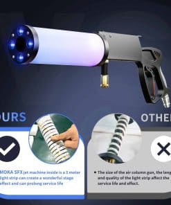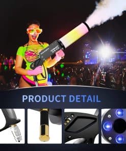 Especificaciones: Potencia: 20W Tamaño del paquete: 2.49 x 0.98 x 0.52 pies Peso: 6.5 kg / 14 libras / 1 pieza Longitud de pulverización: 6-7 metros (20-25 pies) Color: 7 colores Tubo + 4 PCS LED de 3W Embalaje: 1 Máquina de Co2 LED, 1 Manguera de 3 metros (10 pies), 1 manual