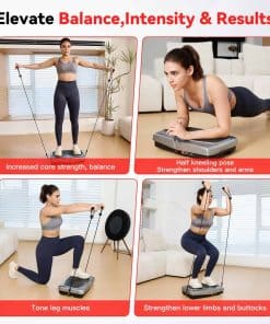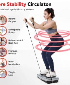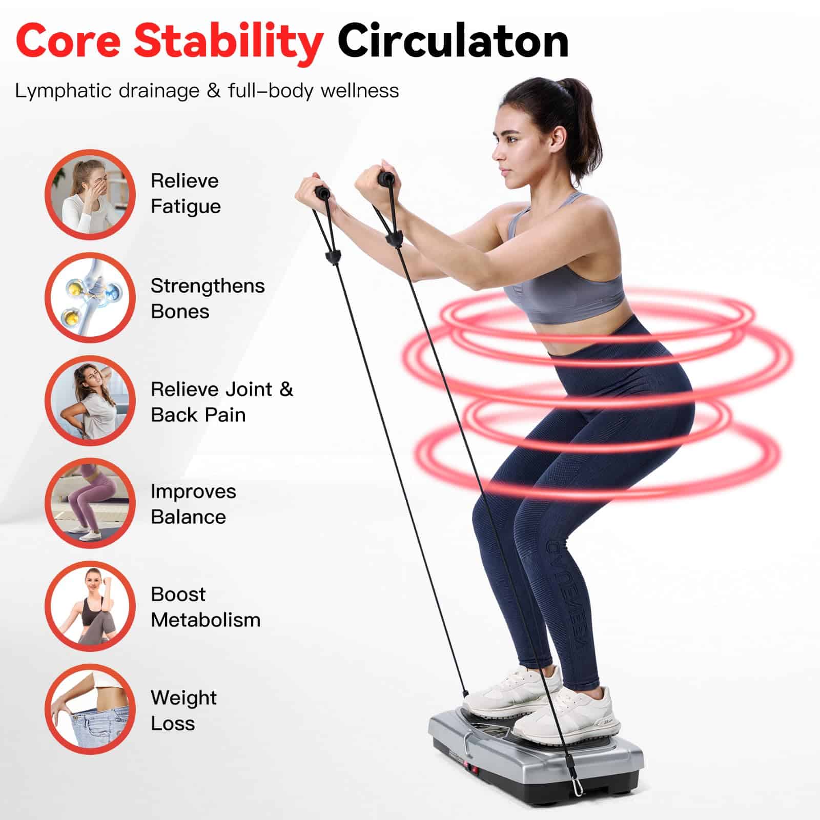4. Diseño Seguro y Estable: 4 ventosas antideslizantes y diseño de motor silencioso en la parte inferior de la placa de vibración para drenaje linfático evitan el deslizamiento y reducen el ruido del movimiento. El cuerpo reforzado mejorado del equipo de fitness casero puede soportar 400 libras.