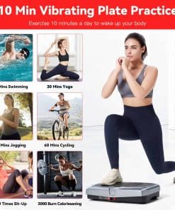 3. Quema de Grasa de Alta Frecuencia: La placa de vibración desencadena la contracción muscular profunda mediante la vibración de alta frecuencia de todo el cuerpo, acelerando la eficiencia de la descomposición de la grasa. Con este equipo de fitness, puedes completar un ejercicio regular en tan solo 10 minutos al día. Dirigiéndose de manera precisa a áreas de grasa obstinadas como la cintura, abdomen, glúteos y piernas.