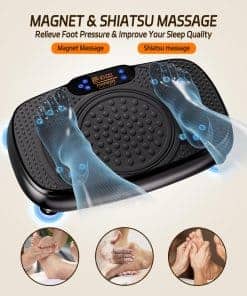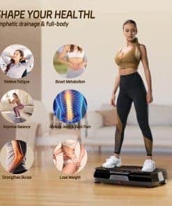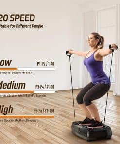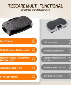 Equipo de ejercicios de placa vibratoria de pérdida de peso eficiente TISSCARE utiliza oscilaciones de alta frecuencia para estimular las contracciones musculares, involucrando múltiples grupos musculares simultáneamente, elevando nuestra frecuencia cardíaca, promoviendo la quema de calorías durante y después de los entrenamientos. Esta actividad vibratoria constante es clave para lograr resultados a largo plazo en la pérdida de peso. El equipo de entrenamiento con muchas funciones incluye un Modo Manual con velocidades vibratorias ajustables (1-120) y un Modo Inteligente con 5 frecuencias vibratorias preestablecidas (P1-P5), para personalizar tus ajustes de vibración y maximizar la eficiencia de tu entrenamiento. Con 2 bandas de resistencia, puedes realizar una variedad de ejercicios de cuerpo entero que promueven el tono muscular y la pérdida de grasa. Solo 10-20 minutos al día en las placas vibratorias pueden generar beneficios significativos. La máquina de ejercicios de placa vibratoria proporciona un entrenamiento de bajo impacto, reduciendo el estrés en nuestras articulaciones, aumentando la circulación y el metabolismo, y reduciendo el dolor muscular. La placa vibratoria TISSCARE lo hace adecuado para personas en varios niveles de condición física, apoya el drenaje linfático, incluyendo a aquellos que se están recuperando de lesiones, proporcionando una forma atractiva de mantenerse en forma y saludable. La plataforma vibratoria de gran capacidad de 300 lbs cuenta con una superficie antideslizante y una carcasa de ABS resistente a impactos, garantizando durabilidad y protegiendo el motor. Proporciona estabilidad y seguridad para todos los usuarios, asegurando una experiencia de entrenamiento en casa confiable. Su diseño compacto y estéticamente agradable se integra perfectamente en cualquier gimnasio en casa o espacio habitable. El diseño fácil de usar de la Placa Vibratoria te permite ajustar fácilmente los ajustes y monitorear el tiempo y la velocidad durante el entrenamiento, ya sea a través del control remoto o de la pantalla táctil LED. Se recomienda el modo P1/P2 para personas con osteoporosis o mayores de 60 años, eligiendo una frecuencia adecuada en el modo de ejercicio suave. Antes de usar este producto, consulta a tu médico si tienes alguna condición médica, como embarazo, enfermedad cardiovascular, osteoporosis, médula ósea anormal, problemas cardíacos o hipertensión.