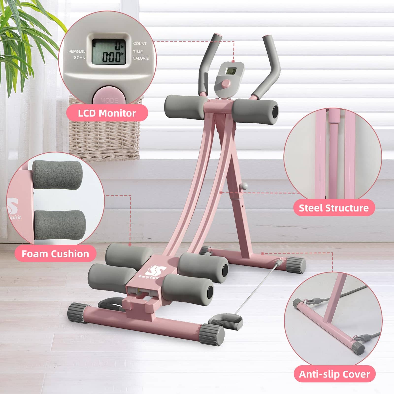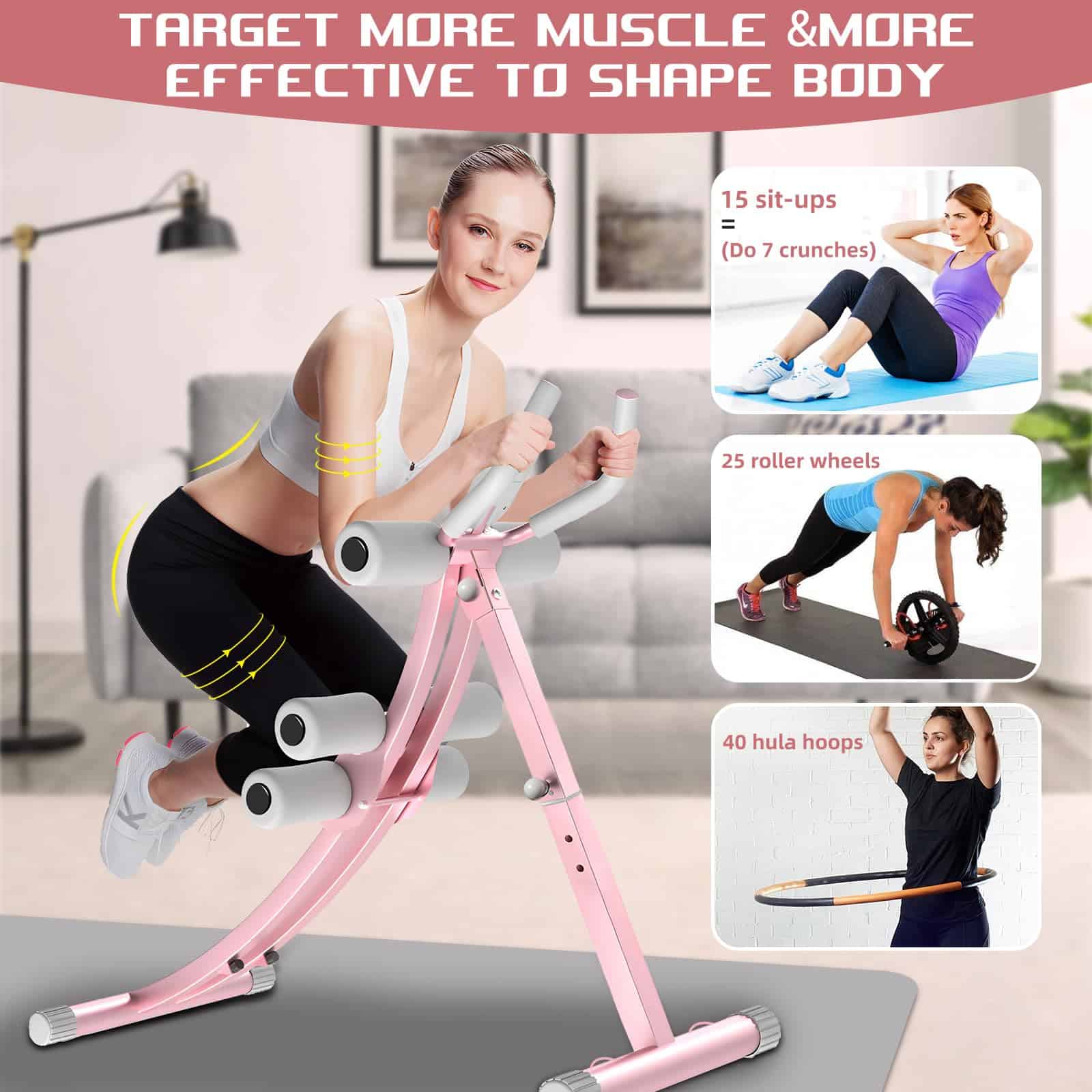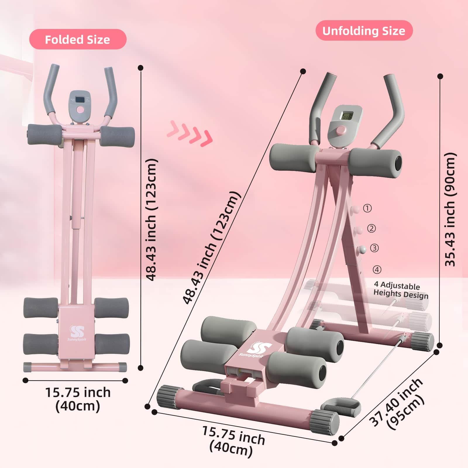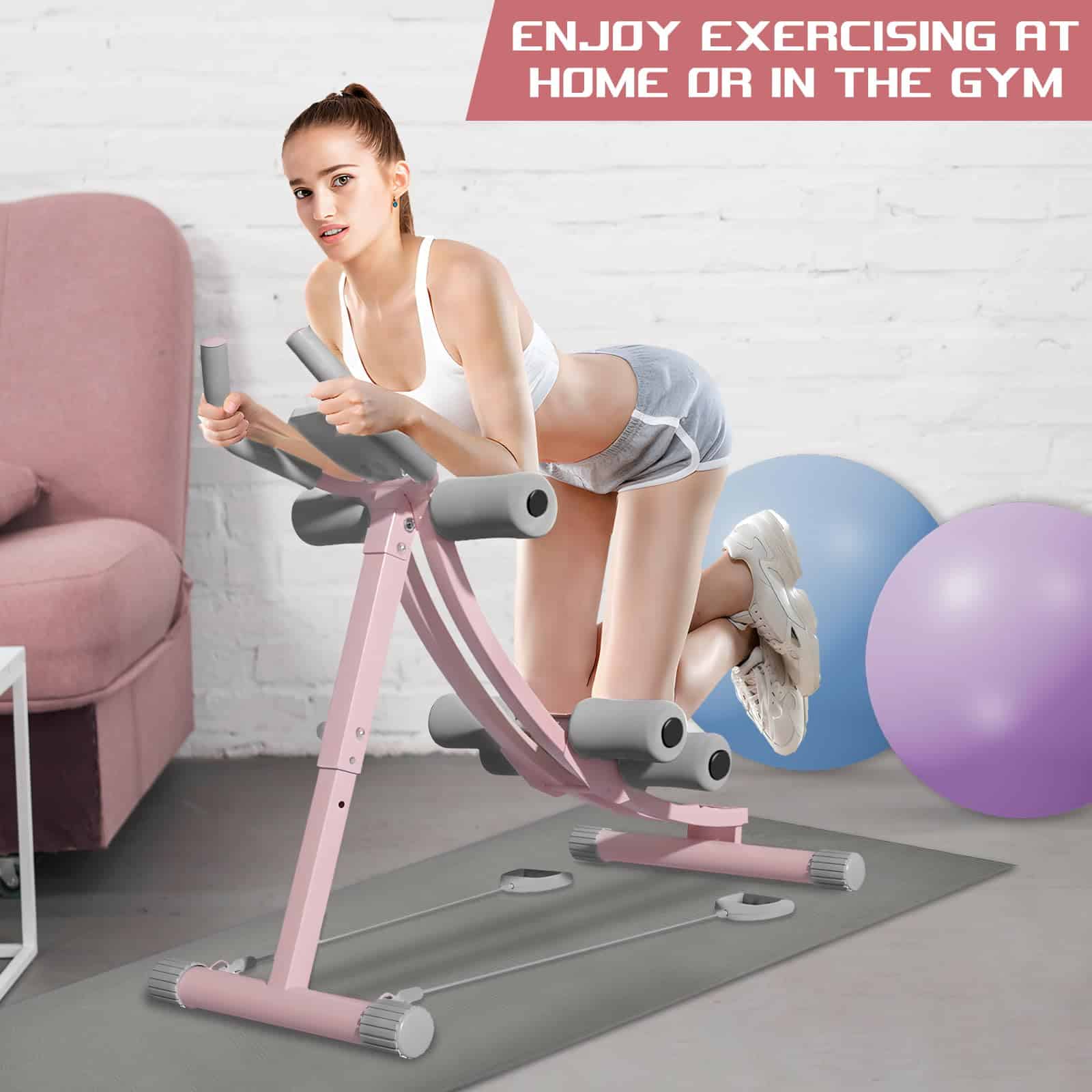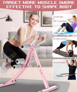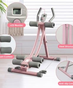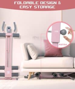 Máquina de Entrenamiento AB con Diseño Ergonómico de Doble Riel Curvado en color rosa, ideal para mujeres que buscan fortalecer su abdomen y mejorar su condición física en casa. Con capacidad para 150 kg, esta máquina cuenta con 120 deslizadores de doble pista que permiten trabajar brazos, abdominales y caderas de forma suave y silenciosa, perfecta para su uso en el hogar. Con resistencia ajustable de 4 niveles, no se necesitan herramientas para ajustar los ángulos de inclinación, lo que la convierte en un equipo versátil para principiantes y profesionales. La pantalla LED incorporada ofrece un seguimiento inteligente en tiempo real de repeticiones, calorías y tiempo, lo que permite optimizar cada sesión de entrenamiento. Las almohadillas para rodillas un 30% más gruesas proporcionan un acolchado ultra suave en comparación con otros diseños rígidos, lo que permite entrenar por más tiempo sin causar tensiones en las articulaciones. Además, esta máquina se pliega verticalmente y se puede almacenar en cualquier lugar, ocupando un espacio mínimo cuando no está en uso. ¡Domina tus objetivos de entrenamiento de estómago con esta máquina AB de calidad profesional!