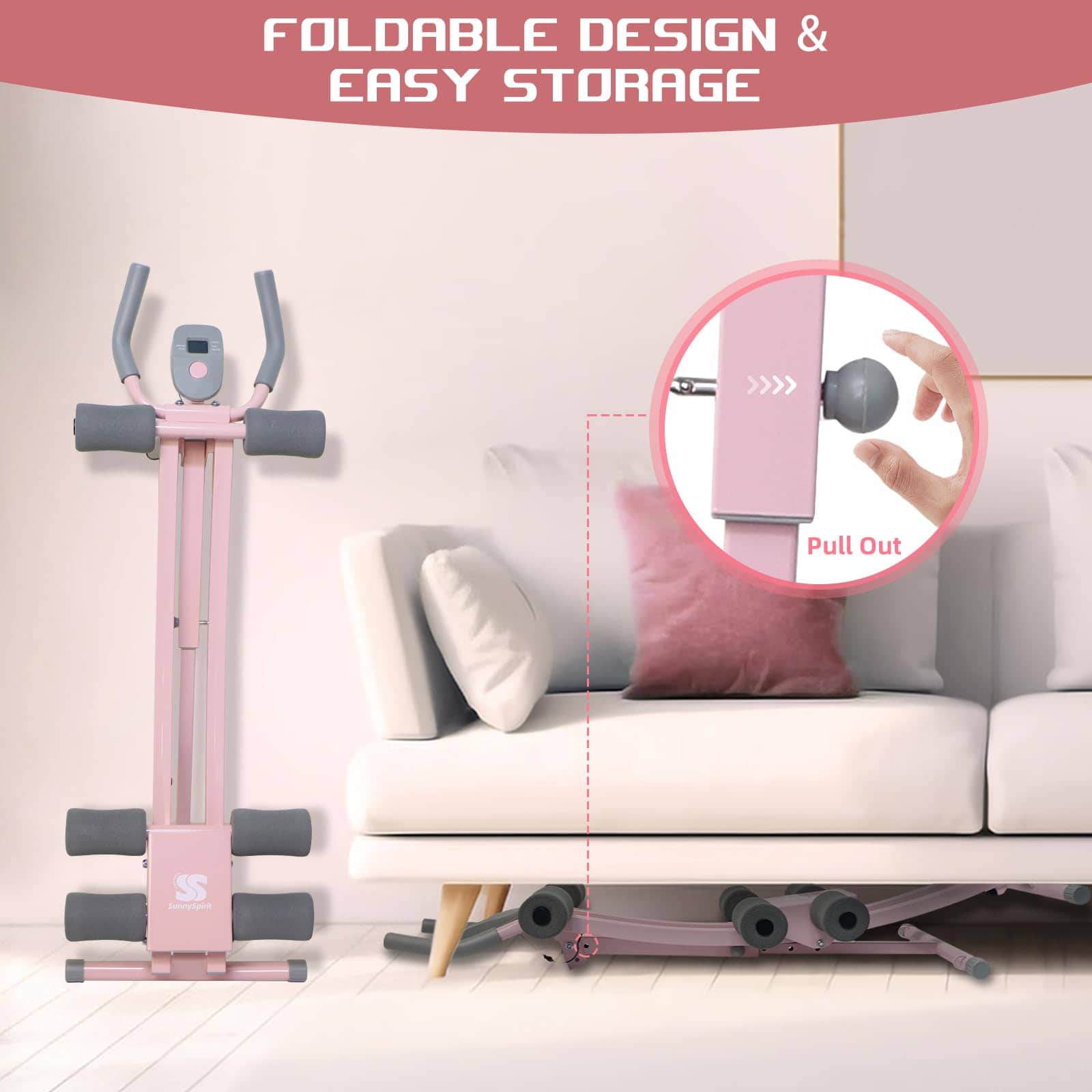 5. Se pliega verticalmente, se almacena en cualquier lugar: Ensambla esta máquina AB para ejercicio en casa en minutos. Se pliega delgada contra las paredes, no se desperdicia espacio.