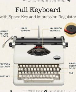 1. Máquina de escribir de la vieja escuela: Experimenta la nostalgia de una era pasada con la Máquina de escribir manual con cinta de tinta incluida, cada pulsación de tecla te transporta a cuando las cartas se escribían a mano con cuidado, con el familiar sonido del teclado.