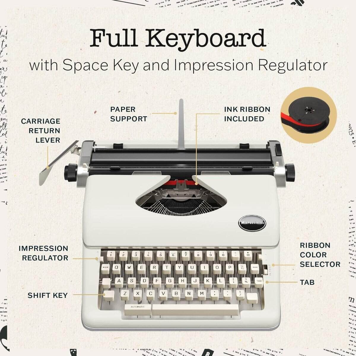 5. Fácil de usar y configurar: Con un diseño mejorado e instrucciones sencillas, esta máquina de escribir manual vintage está lista para usarse en minutos. Deja fluir tu creatividad mientras escribes y disfruta del encanto de antaño que aporta a tu rutina de escritura