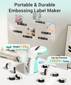 La Máquina de etiquetado en relieve EazeID cuenta con un sistema intuitivo de giro y clic que hace que la creación de etiquetas sea sencilla. Simplemente gire la rueda para seleccionar el carácter deseado y haga clic en la palanca para grabarlo en la cinta. Este diseño fácil de usar permite que tanto adultos como niños creen etiquetas de alta calidad de forma rápida y sencilla. Ya sea que esté etiquetando archivos en casa o agregando un toque personal a sus proyectos de bricolaje, esta etiquetadora en relieve está diseñada para conveniencia y eficiencia. La máquina de etiquetado retro en relieve con asa ergonómica garantiza un agarre cómodo, incluso durante un uso prolongado, mejorando la experiencia general del usuario. Personalizable con 48 caracteres (letras, números y símbolos), la Máquina de etiquetado en relieve EazeID ofrece opciones de personalización versátiles. Cree etiquetas personalizadas para cualquier ocasión, desde organizar sus suministros de manualidades hasta etiquetar álbumes de fotos. La amplia gama de caracteres asegura que pueda expresarse creativamente mientras mantiene la funcionalidad. Incluye 10 rollos de cintas negras de 9 mm de ancho que le permiten terminar el tema de su proyecto. Personalice su espacio con etiquetas con efecto 3D, llamativas y que destaquen. Esta máquina de etiquetado es ideal para propietarios de viviendas y entusiastas del bricolaje que aman mantener las cosas organizadas y con estilo. Úsela para álbumes de recortes, regalos de bricolaje, organización del hogar y más. Mejore sus proyectos creativos con etiquetas en relieve que agregan un toque profesional y personal. Etiquete su armario de manualidades, armario o despensa para mantenerse organizado sin esfuerzo. La variedad de colores de cinta y caracteres facilitan la personalización de sus etiquetas y se adaptan a cualquier estilo decorativo. Haga que su hogar y manualidades luzcan ordenados y pulidos con esta herramienta versátil. Diseñado para la portabilidad, la Máquina de etiquetado en relieve EazeID es ligera y fácil de transportar. Su tamaño compacto la hace perfecta para su uso en movimiento, ya sea que esté viajando, trabajando en diferentes habitaciones o asistiendo a eventos de manualidades. La operación sin batería significa que no necesita fuentes de alimentación, asegurando que pueda crear etiquetas en cualquier momento y lugar. La construcción en plástico de ingeniería duradero brinda una excelente durabilidad y resistencia al impacto, lo que la hace confiable para un uso frecuente. Mantenga su espacio de trabajo organizado y eficiente donde sea que esté con esta útil herramienta. La Máquina de etiquetado en relieve EazeID trae de vuelta la nostalgia de las etiquetadoras de la vieja escuela mientras ofrece características modernas. Su diseño retro agrega un toque encantador a cualquier entorno, convirtiéndola en una adición destacada a su escritorio o área de manualidades. El asa ergonómica con agarre de goma antideslizante garantiza comodidad durante el uso prolongado, reduciendo la fatiga. Los materiales de alta calidad utilizados en su construcción garantizan longevidad y confiabilidad. Ya sea que esté reviviendo recuerdos de la infancia o comenzando un nuevo hobby, esta etiquetadora en relieve combina forma y función para una experiencia placentera y práctica.