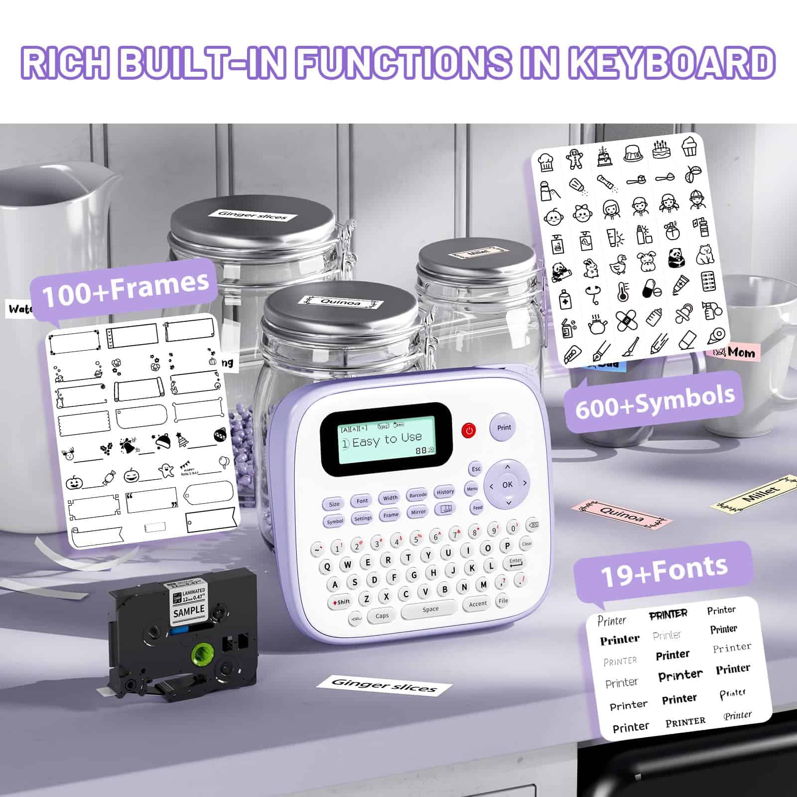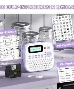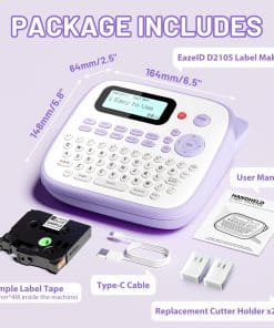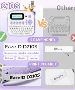 Portabilidad y opciones de alimentación: La Máquina de etiquetado D210S con teclado, diseño ligero y portátil para usar sobre la marcha o en tu escritorio, alimentado por 6 pilas AAA o quedarse alimentado con un cable de Type c. Personalización y creatividad: La etiquetadora D210S ofrece una amplia selección de más de 800+símbolos, 100+ marcos y 16 opciones de fuente. Puede imprimir códigos de barras, admitir hasta 4 líneas de texto y ajustar tamaños de fuente a grande, mediano o pequeño. Esto hace que tus etiquetas no solo sean funcionales, sino también visualmente atractivas, etiquetas diseñadas para inspirar creatividad, la D210S garantiza que puedas crear etiquetas personalizadas y con aspecto profesional sin esfuerzo. Diseño fácil de usar: La máquina de etiquetado portátil con cinta con teclas de un toque proporcionan acceso rápido a fuentes, símbolos, marcos y plantillas, Una pantalla le permite previsualizar las etiquetas antes de imprimir, garantizando precisión, la interfaz fácil de usar simplifica el proceso de etiquetado. Cintas duraderas y versátiles: La etiquetadora de teclado D210S utiliza cintas BZ y también es compatible con Brother p touch TZe 12mm 0.47 cintas laminadas, que son impermeables y resistentes a la decoloración, adecuadas para usos en congelador a microondas, aplicaciones de interior y exterior, cintas especiales disponibles para cables, alambres, fotos, archivos de oficina, cajas de almacenamiento, marcaje de fechas de alimentos, clasificación de artículos cosméticos, artículos escolares para niños, red de cables, pequeñas empresas y más. Aplicaciones versátiles de etiquetado: La etiquetadora EazeID puede manejar carpetas de archivos, suministros de oficina, cocina, organización de niños en la escuela y más. La etiquetadora de teclado es compatible con múltiples anchos de cinta (6 mm, 9 mm, 12 mm), lo que la hace adecuada para diversas necesidades de etiquetado