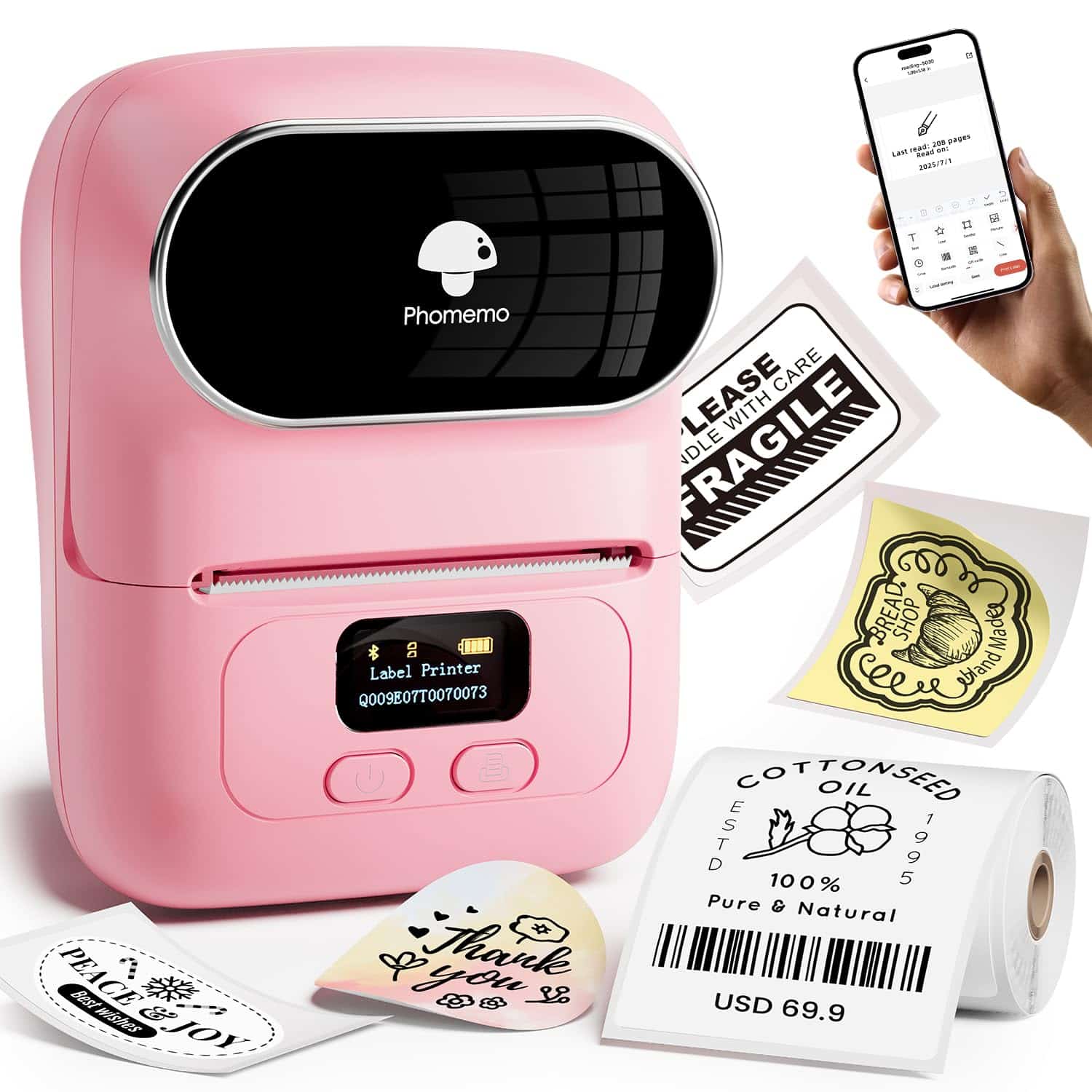 2. Potente APP Print Master: La impresora de etiquetas Phomemo con conexión bluetooth a la APP, puedes realizar una impresión HD rápida. La impresora de etiquetas Phomemo proporciona 300+ plantillas comerciales y domésticas, más de 30 fuentes, 500 emoticonos y más de 40 bordes. Las etiquetas se pueden guardar para un uso futuro. La impresora de etiquetas bluetooth te permite personalizar y editar etiquetas, y también admite la impresión por lotes de Excel, aumentando tu eficiencia en el trabajo y manteniendo organizado tu hogar y lugar de trabajo.