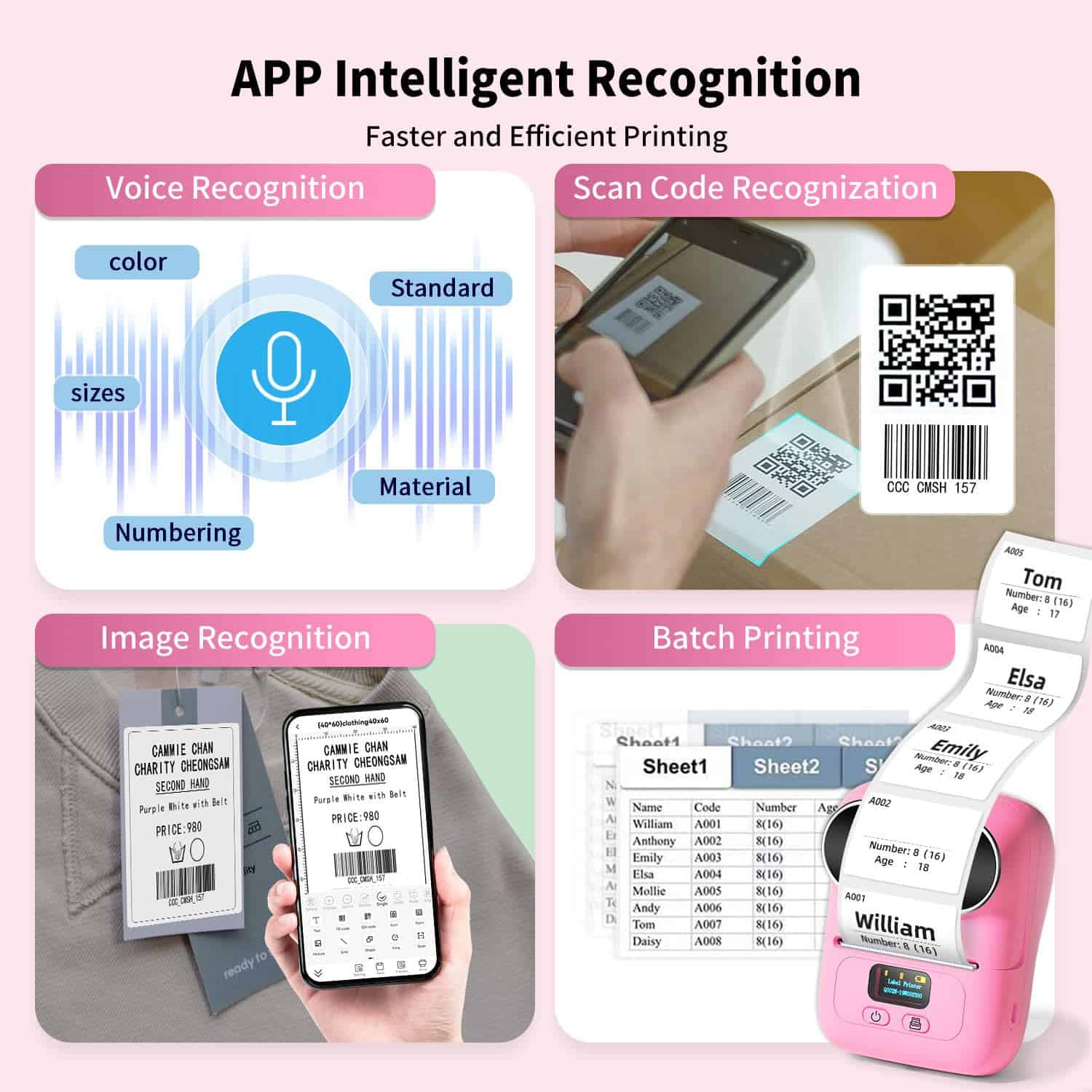 3. Impresora de etiquetas sin tinta: La pequeña impresora de etiquetas adopta la tecnología de impresión térmica, velocidad de impresión de hasta 30 mm/s, puede imprimir hasta 4200 etiquetas con una sola carga, no necesita tinta ni tóner, ahorro de costos. La impresora de códigos de barras tiene una batería recargable incorporada, para ahorrar energía, la impresora de etiquetas se apagará automáticamente después de 15 minutos de trabajo suspendido, reduciendo los desperdicios.