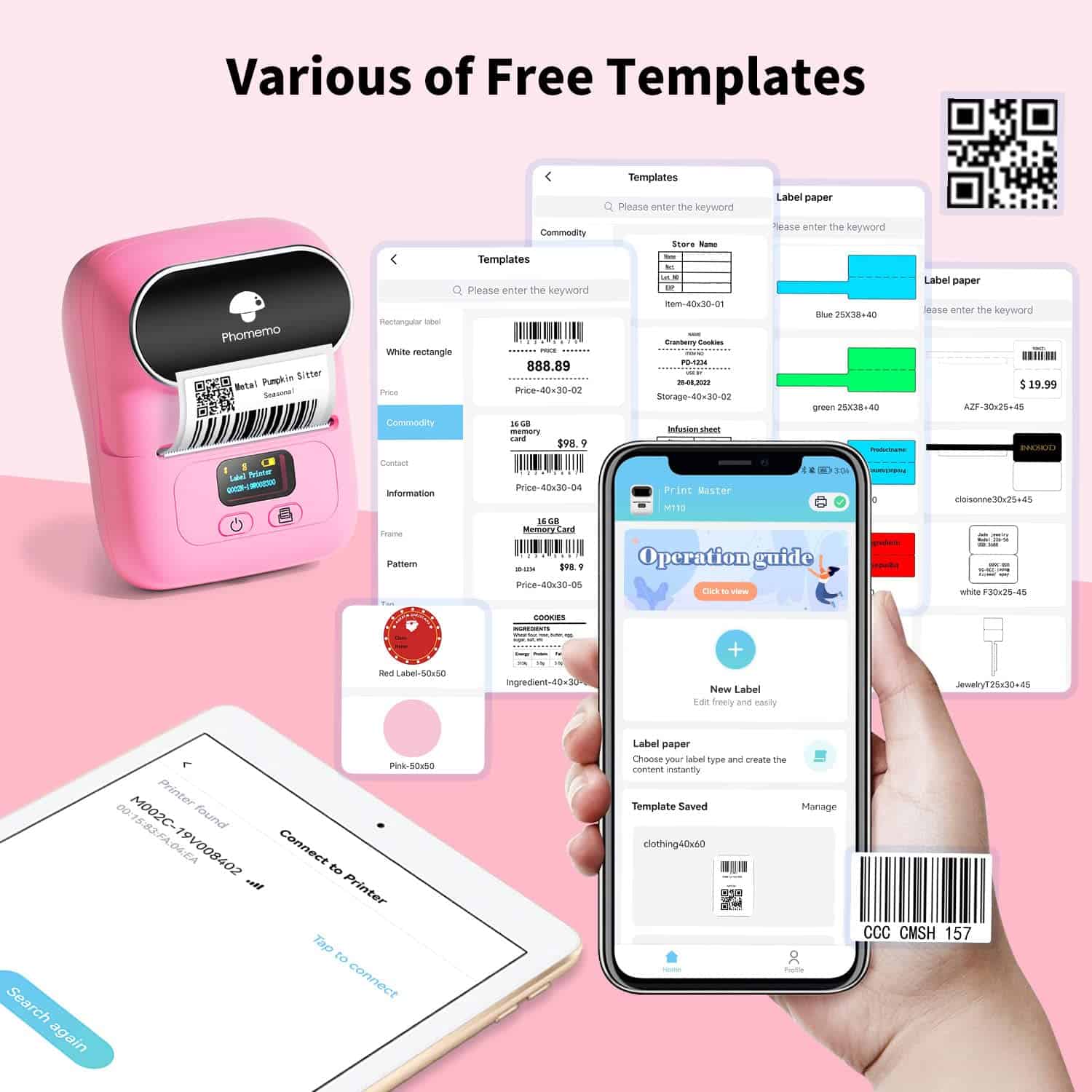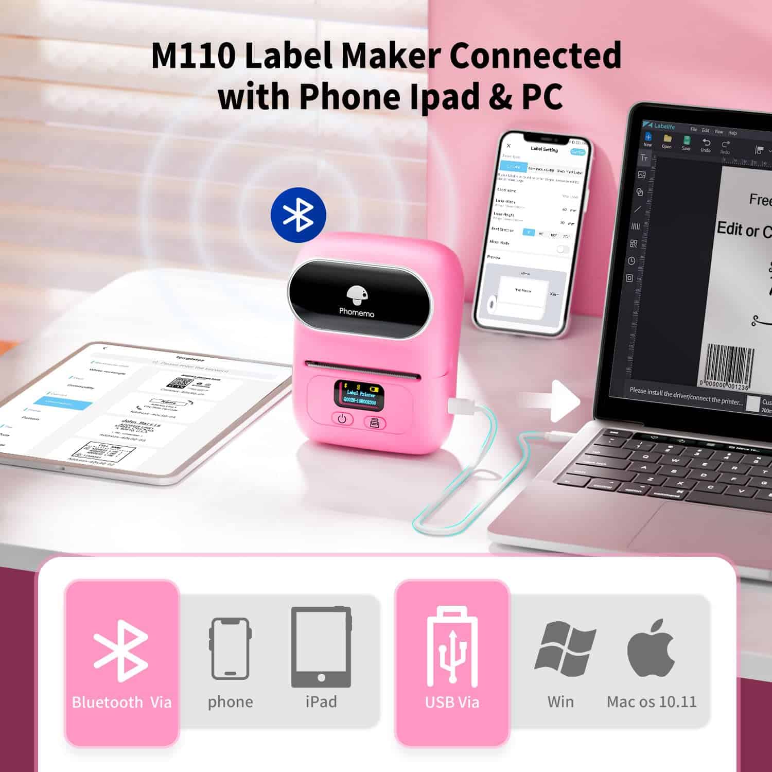 1. Máquina de etiquetado para pequeñas empresas y hogar: La máquina de etiquetado M110 se puede conectar fácilmente a iOS/Android/Windows, PC, Print Master APP tiene una gran cantidad de plantillas, es la mejor opción para la organización en el hogar (etiquetas de ropa, recipientes de almacenamiento, botellas, frascos, contenedores de alimentos, etc.) Ideal para supermercados, tiendas minoristas (etiquetas de precios, etiquetas de ingredientes, etiquetas de información del producto, códigos QR, códigos de barras, etiquetas de joyería, logotipos de marca, etc.) o para escuelas y oficinas (etiquetas de nombre, etiquetas de carpetas para clasificar, documentos, etiquetas de imágenes, etc.) Las etiquetas Phomemo M110 están disponibles en anchos de (20mm-50mm), no son adecuadas para etiquetas de envío.