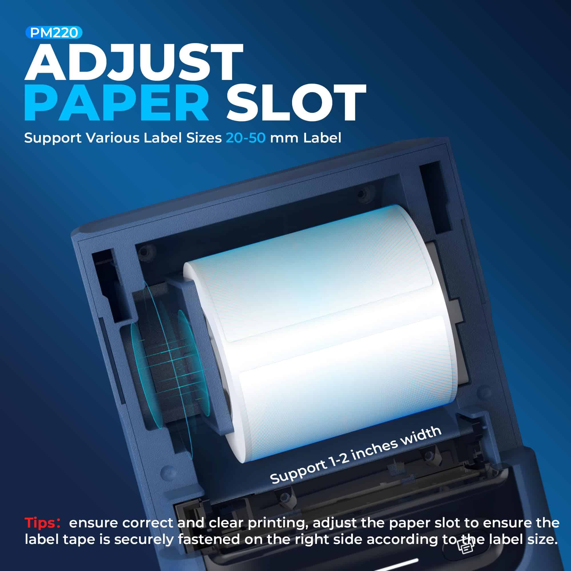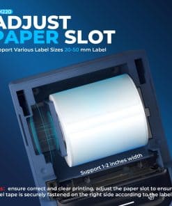 3. Impresión de Alta Calidad: Recomendamos usar nuestro papel térmico para etiquetas NELKO para una buena calidad de impresión. Impresora de Etiquetas Nelko con Tecnología Térmica Directa. Equipada con chips de alta velocidad, puedes disfrutar de alta definición sin depender de tinta o tóner. Máquina de Etiquetas Bluetooth Nelko PM220 con cinta compatible con ancho de etiqueta 23-54mm (0.91″-2.12″). La impresora de etiquetas viene con una cinta de etiquetas colocada en el depósito de papel. Nota Ajusta la ranura de papel para asegurar correctamente la cinta de etiquetas según el tamaño de la etiqueta. Presiona el botón en el lado derecho para calibrar la etiqueta antes de imprimir.