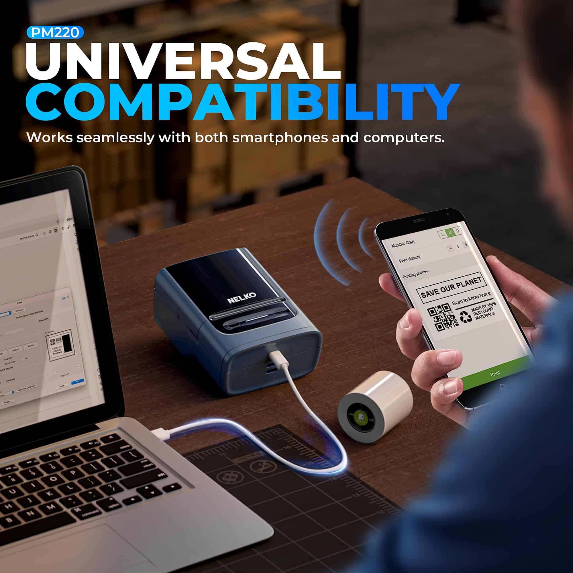 1. Fácil de Usar: PM220 Bluetooth Label Maker compatible con iOS & Android y PC. Para teléfono móvil iOS & Android, descarga la aplicación «Nelko» para imprimir via Bluetooth. Para PC, es necesario descargar el controlador y la aplicación para la impresora de etiquetas PM220. Nota: Por favor NO conecte directamente vía Bluetooth para todos los dispositivos.
