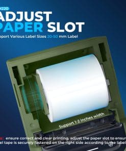 3. Impresión de alta calidad: Recomendamos el uso de nuestro papel térmico para etiquetas NELKO para una buena calidad de impresión. Impresora de etiquetas Nelko con tecnología térmica directa. Equipado con chips de alta velocidad, puede disfrutar de alta definición sin depender de tinta o tóner. La máquina de etiquetas Bluetooth Nelko con cinta es compatible con el ancho de la etiqueta 23-54 mm 0.91″-2.12″). La impresora de etiquetas viene con una cinta de etiquetas colocada en el contenedor de papel. Ajuste la ranura de papel para asegurar la cinta de etiquetas adecuadamente de acuerdo con el tamaño de la etiqueta. Presione el botón en el lado derecho para calibrar la etiqueta antes de imprimir.