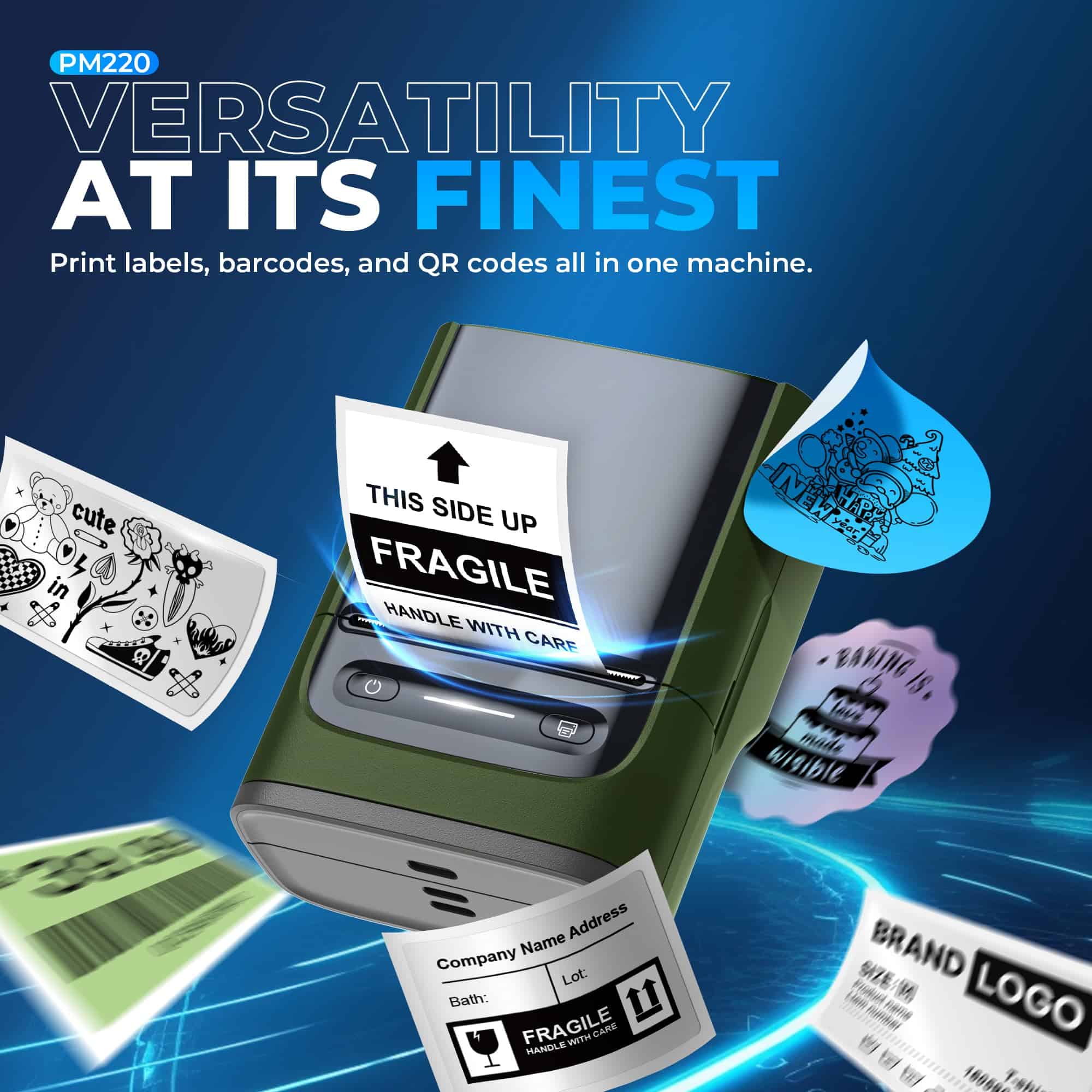 4. Portátil: Máquina de etiquetas PM220 con cinta compatible con teléfonos inteligentes y PC. Conecte fácilmente la impresora de etiquetas a su teléfono inteligente en solo 5 segundos para una impresión rápida y conveniente, la impresora de etiquetas logra una impresión cómoda, suave y rápida. Diseño mini compacto, puede llevar esta máquina de etiquetas portátil con cinta a cualquier lugar. Nota: adaptador de carga no incluido, no apto para adaptadores de carga rápida.