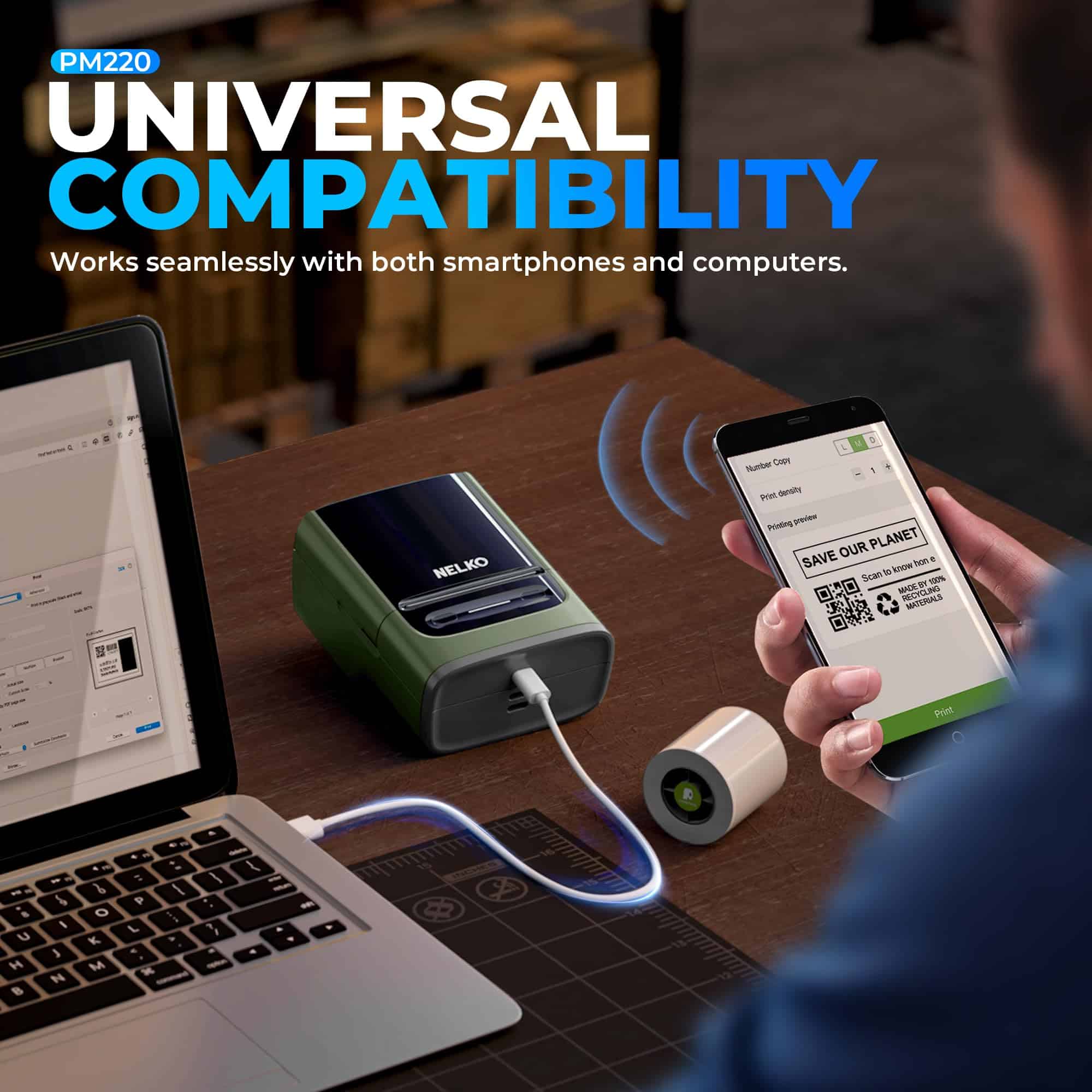 1. Fácil de usar: PM220 Bluetooth Label Maker compatible con iOS y Android y PC. Para teléfono móvil iOS y Android, descargue la aplicación «Nelko» para imprimir vía Bluetooth. Para PC, necesita descargar el controlador y la aplicación para la impresora de etiquetas PM220. Nota: NO conecte directamente a través de Bluetooth para todos los dispositivos.