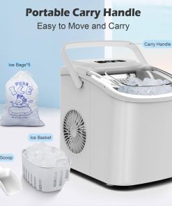 1. Hacer Hielo Rápido en 6 Minutos Esta máquina de hacer hielo de encimera se ha actualizado con un nuevo compresor, lo que le permite producir 9 cubitos de hielo en solo 6 minutos y generar hasta 26.5 libras de hielo por día. La máquina de hacer hielo ofrece dos tamaños de hielo para elegir. Los cubitos de forma popular son suaves, no se pegan fácilmente entre sí y son perfectos para whisky, bebidas frías o café helado. 2. Máquina de Hacer Hielo Portátil y Compacta Esta máquina de hacer hielo de encimera es portátil con un tamaño compacto de 11 x 9 x 11 pulgadas. La máquina de hacer hielo de mesa también está diseñada con un asa de transporte conveniente, lo que la hace fácil de llevar y adecuada para diversas ocasiones como bares en casa, camping o viajes en RV. 3. Máquina de Hacer Hielo Autolimpiante La máquina de hacer hielo de encimera cuenta con una función avanzada de autolimpieza que se puede activar presionando el botón ON/OFF durante 5 segundos, lo que permite una limpieza rápida y fácil. Esta máquina de hacer hielo autolimpiable garantiza que cada bebida helada que prepares sea saludable. 4. Operación Silenciosa y Amigable con el Usuario Funcionando a menos de 35db, esta máquina de hacer hielo portátil de encimera proporciona un ambiente tranquilo para hacer hielo, similar a un congelador en funcionamiento. La tapa transparente te permite controlar la capacidad de hielo, y el sensor detecta automáticamente cuando el hielo está lleno para evitar el desbordamiento. 5. Calidad Superior y Promesa de Garantía El paquete incluye un asa, cesto de hielo, pala de hielo, bolsas de hielo, manual y un paquete bien diseñado que se puede regalar. Nuestra misión es ofrecer a los clientes una máquina de hielo de encimera premium a un precio razonable, mejorando su calidad de vida. Ofrecemos una garantía de 12 meses desde la fecha de compra original y soporte técnico de por vida. Si tienes alguna pregunta sobre el uso de nuestra máquina de hielo, nuestro equipo está siempre listo para ayudarte.