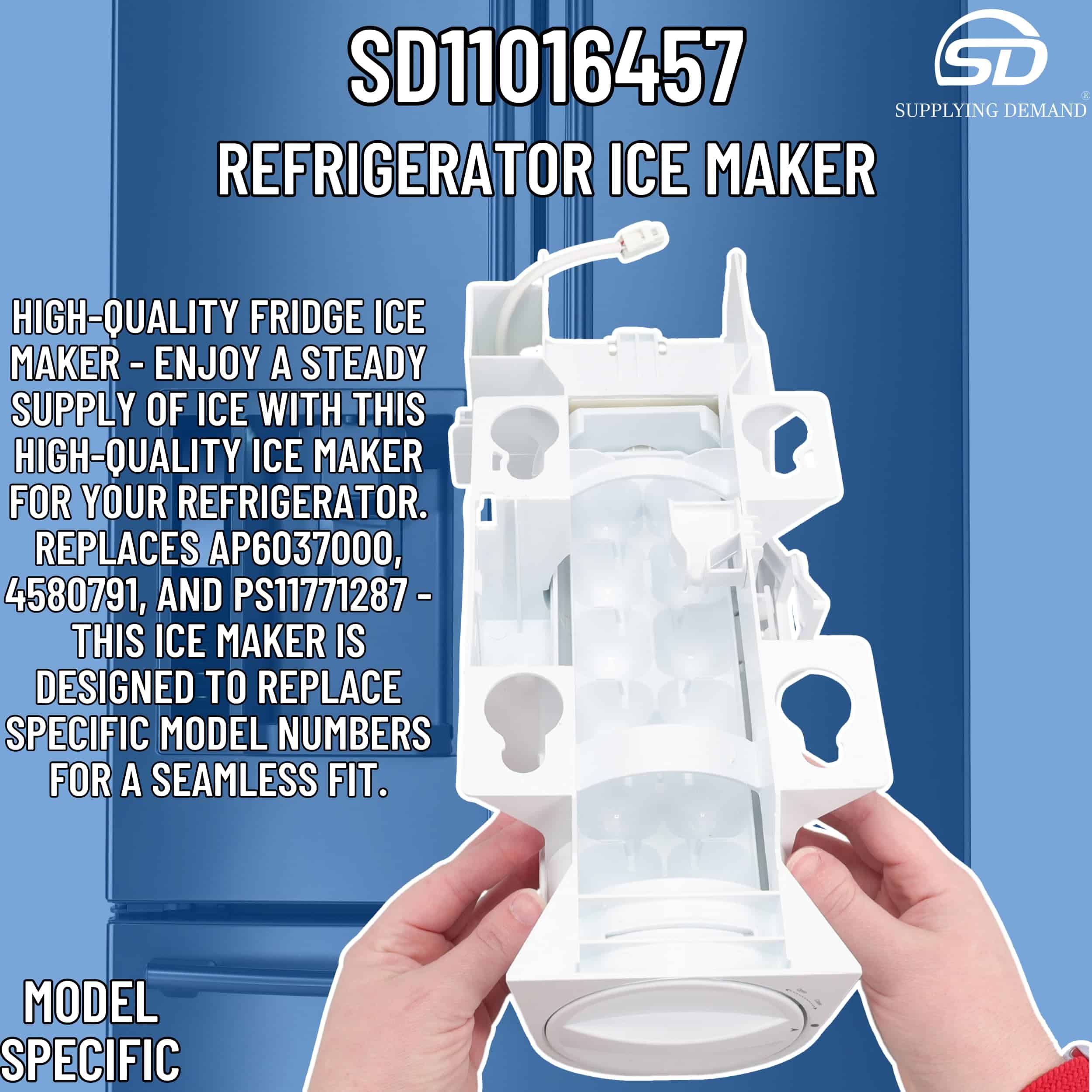 Reemplace su antigua máquina de hacer hielo de refrigerador con la máquina de hacer hielo para refrigerador Supplying Demand 11016457. Este producto es un reemplazo duradero y confiable que le brindará un suministro constante de hielo para su refrigerador. Diseñada para reemplazar los números de modelo específicos AP6037000, 4580791 y PS11771287, esta máquina de hacer hielo garantiza un ajuste perfecto. La instalación es muy sencilla, lo que le permitirá disfrutar de hielo fresco en su refrigerador rápidamente. Confíe en Supplying Demand para ofrecer opciones de reemplazo confiables para todas sus necesidades de refrigerador.