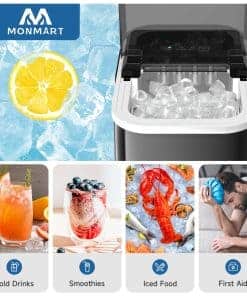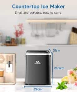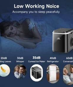 3. Tamaño Portátil y Compacto Con medidas de solo 8.66 x 12.2 x 11.22 pulgadas y un peso de 12.54 libras, el tamaño compacto y el diseño de mango portátil hacen que la máquina de hielo sea fácil de transportar sin ocupar mucho espacio, perfecta para la cocina, hogar, oficina, camping y RVs, entre otras ocasiones.