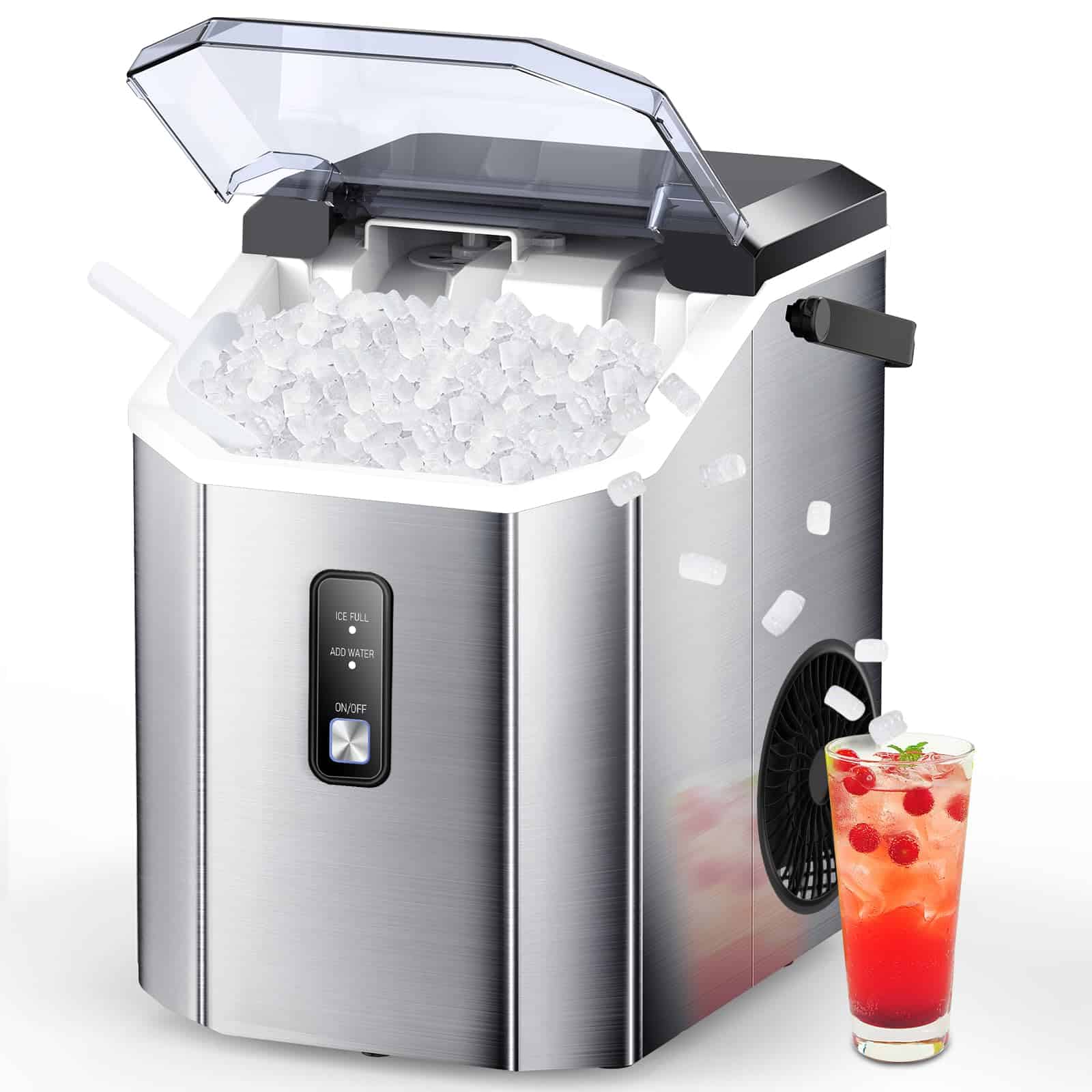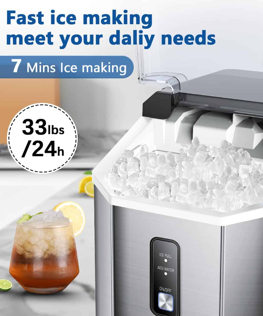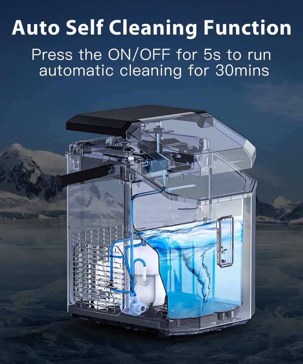 Rápida fabricación de hielo: ahorre tiempo y energía con la eficiente operación de la máquina de hielo portátil Joy Pebble Nugget, que produce 100 piezas de hielo en 14 minutos, lo que la convierte en la elección ideal para hogares y oficinas ocupadas. Las pepitas de hielo suaves y masticables conservan su sabor y son ideales para congelar bebidas. Nunca te quedes sin hielo de nuevo con la máquina de hielo portátil Joy Pebble que puede crear hasta 33 lbs de hielo por día, asegurando que tú y tus invitados se mantengan frescos todo el día. asa para fácil transporte: la máquina de hielo de pepita Joy Pebble viene equipada con un asa resistente, lo que facilita su transporte a cualquier lugar, ya sea una barbacoa, un viaje de campamento o una fiesta al aire libre. Solo agrega agua y enciende para hacer hielo, asegurando que tengas un suministro constante de hielo donde quiera que vayas. El diseño compacto permite una fácil colocación en la encimera, en vehículos recreativos o en barcos. Indicador inteligente y autolimpieza: la máquina de hielo de pepita Joy Pebble de mostrador cuenta con un panel de control sencillo, solo agrega agua, conéctala, presiona el botón de encendido y olvídalo. El indicador se ilumina cuando el hielo está lleno o necesitas más agua. Presiona el botón de ENCENDIDO/APAGADO durante 5 segundos, la luz indicadora anulará el blanco. Ejecutará el modo de limpieza durante 15 minutos y saldrá automáticamente. Con un tapón de drenaje en la parte inferior, es fácil vaciar el agua no utilizada. No se necesita una instalación compleja. Cubierta transparente: la cubierta transparente de la máquina de hielo de pepita Joy Pebble proporciona una forma conveniente de monitorear el proceso de fabricación de hielo sin tener que abrir la tapa. El paquete viene con una cesta y una pala de hielo para un servicio fácil. Máquina de hielo segura y duradera: la máquina de hielo de pepita portátil Joy Pebble está hecha de material apto para uso alimentario, solo para tu salud y seguridad. Cubierta duradera, lisa y fácil de limpiar. GARANTÍA DEL FABRICANTE DE 1 AÑO – Compra con confianza. Cualquier pregunta sobre la máquina de hacer hielo de pepita Joy Pebble, por favor, póngase en contacto con el servicio al cliente directamente, le responderemos a su correo electrónico dentro de 24 horas.