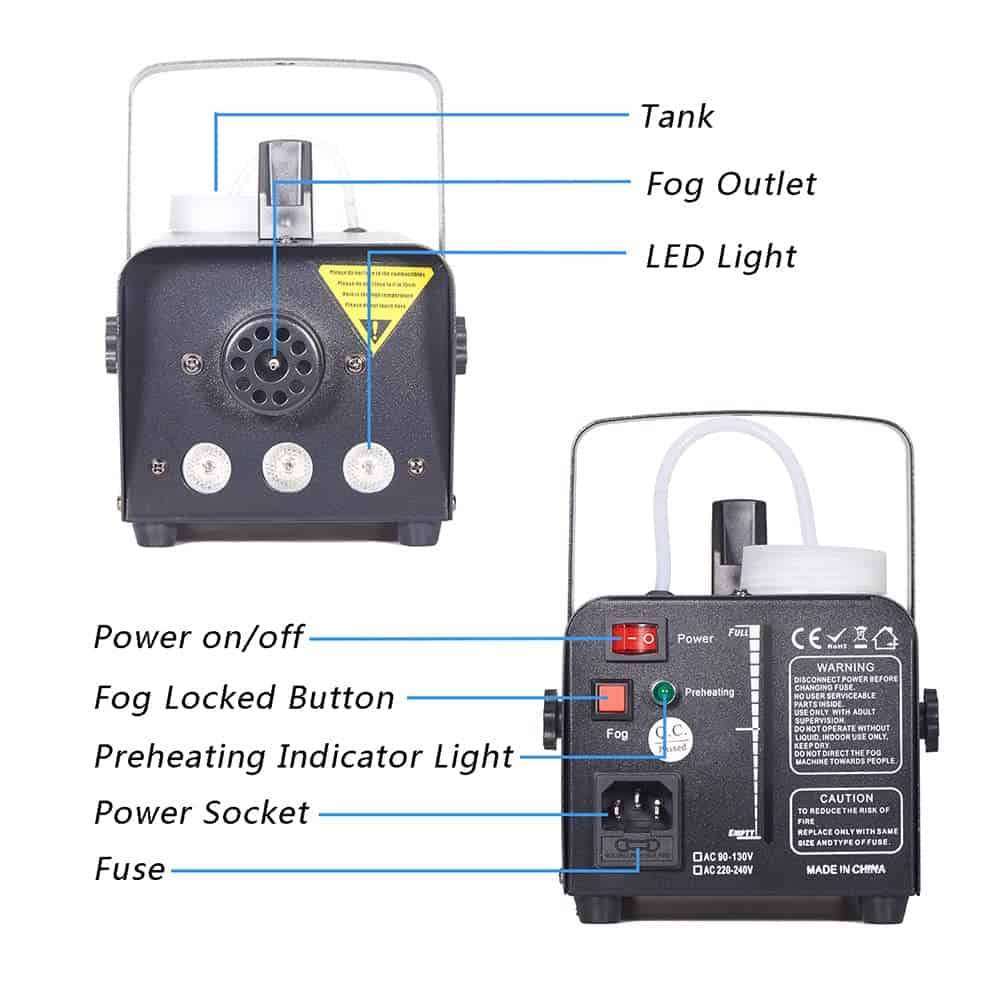 1. Crea al instante un ambiente lleno de humo Esta máquina de humo ofrece 500W de potencia y solo requiere de 2-3 minutos de tiempo de calentamiento para producir hasta 2500 CFM de humo no tóxico, cubriendo un área espaciosa de 200 pies cuadrados con 6-10 pies de humo durante 40-60 segundos. 2. Opciones de iluminación personalizables Nuestra máquina de humo viene con 3 luces LED de colores completos, ofreciendo 12 opciones de color incluyendo rojo, verde, azul, y 9 colores únicos mixtos. Elija entre 3 modos de luz diferentes – Salto, Fundido, o Destello – para la atmósfera perfecta para cualquier ocasión. 3. Control Remoto Inalámbrico Con un control remoto inalámbrico 2-en-1, opere fácilmente la pulverización de humo y las luces LED por separado para un control preciso y conveniente. 4. Duradero y Conveniente Construido con metal de hierro y aluminio de alta calidad, cuenta con una disipación de calor eficiente para un uso duradero. La máquina diseñada de manera innovadora elimina la necesidad de un receptor de señal externo, haciendo que la operación sea más conveniente que nunca. 5. Versátil para todas las ocasiones Nuestra máquina de humo es la adición perfecta a cualquier evento o celebración, ya sea conciertos en vivo, escenarios, Halloween, fiestas, bodas o incluso reuniones de entretenimiento familiar casual! ¡Está garantizado que creará una atmósfera animada y memorable.