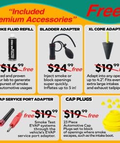 La Máquina de Humo Automotriz Modelo 3000 está diseñada para detectar fugas en sistemas automotrices como el sistema EVAP, sistemas de admisión, líneas de vacío y más. El cartucho de cerámica premium asegura un elemento calefactor duradero y de alta calidad que genera humo denso y consistente, facilitando la detección incluso de las fugas más pequeñas.