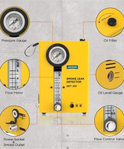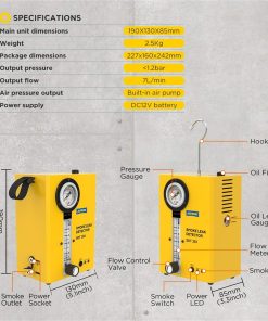 External Flow Meter: You can easily control the air pressure, because the air pressure of each pipe in the car is different. If the air pressure is too high, the pipe will be damaged, and if the air pressure is too low, the leak will not be detected. Therefore, the flow meter is very important to protect your detection system more effectively. Make testing safer.