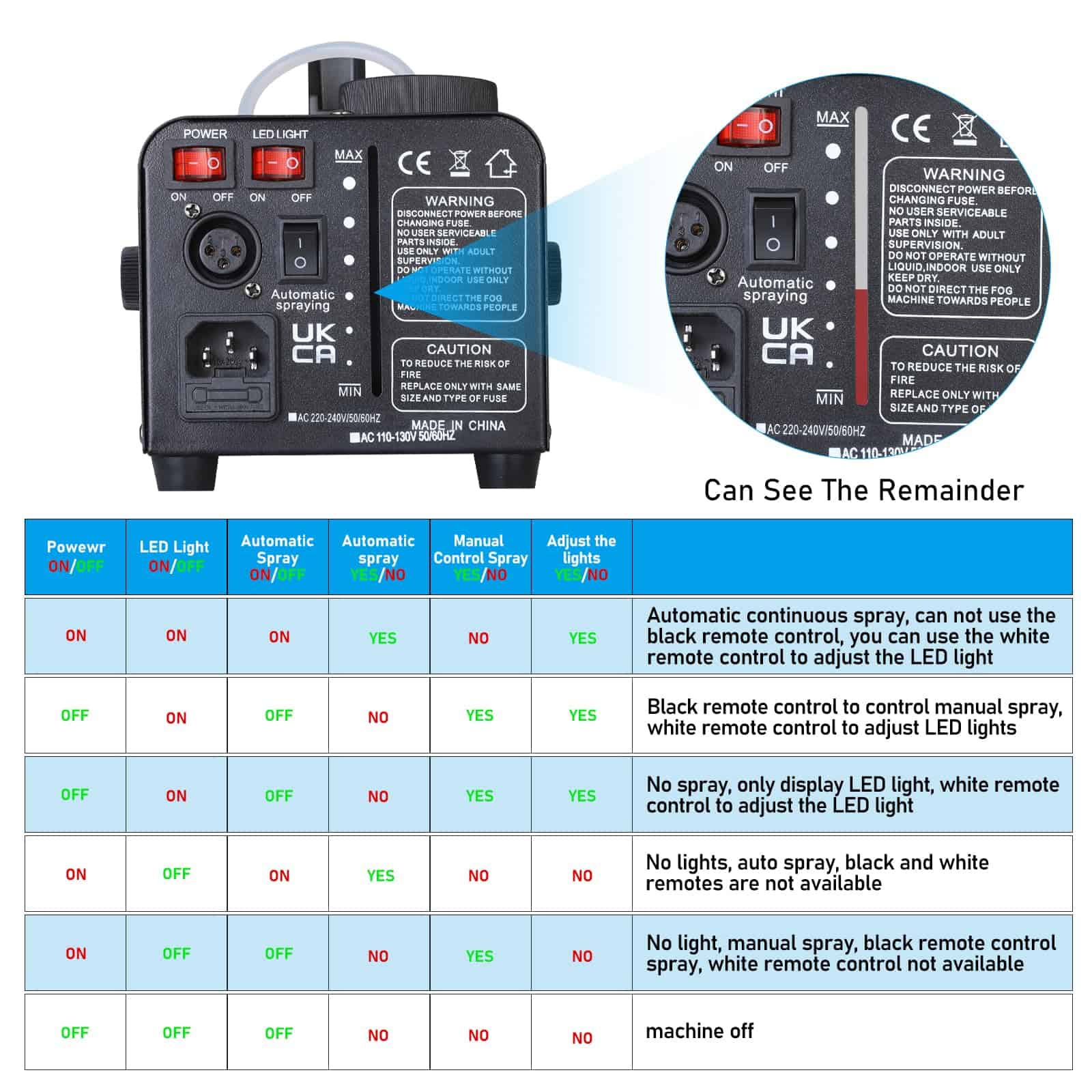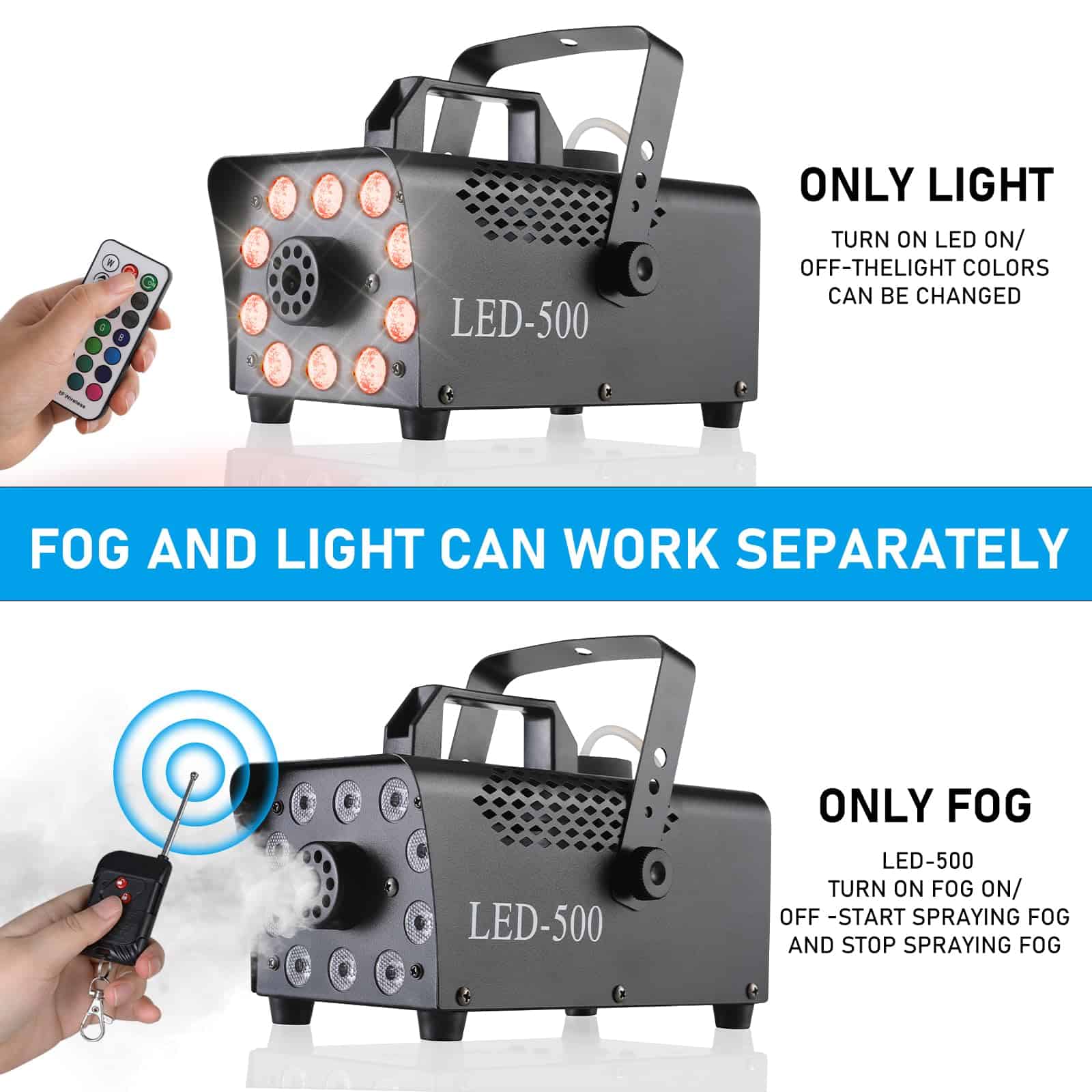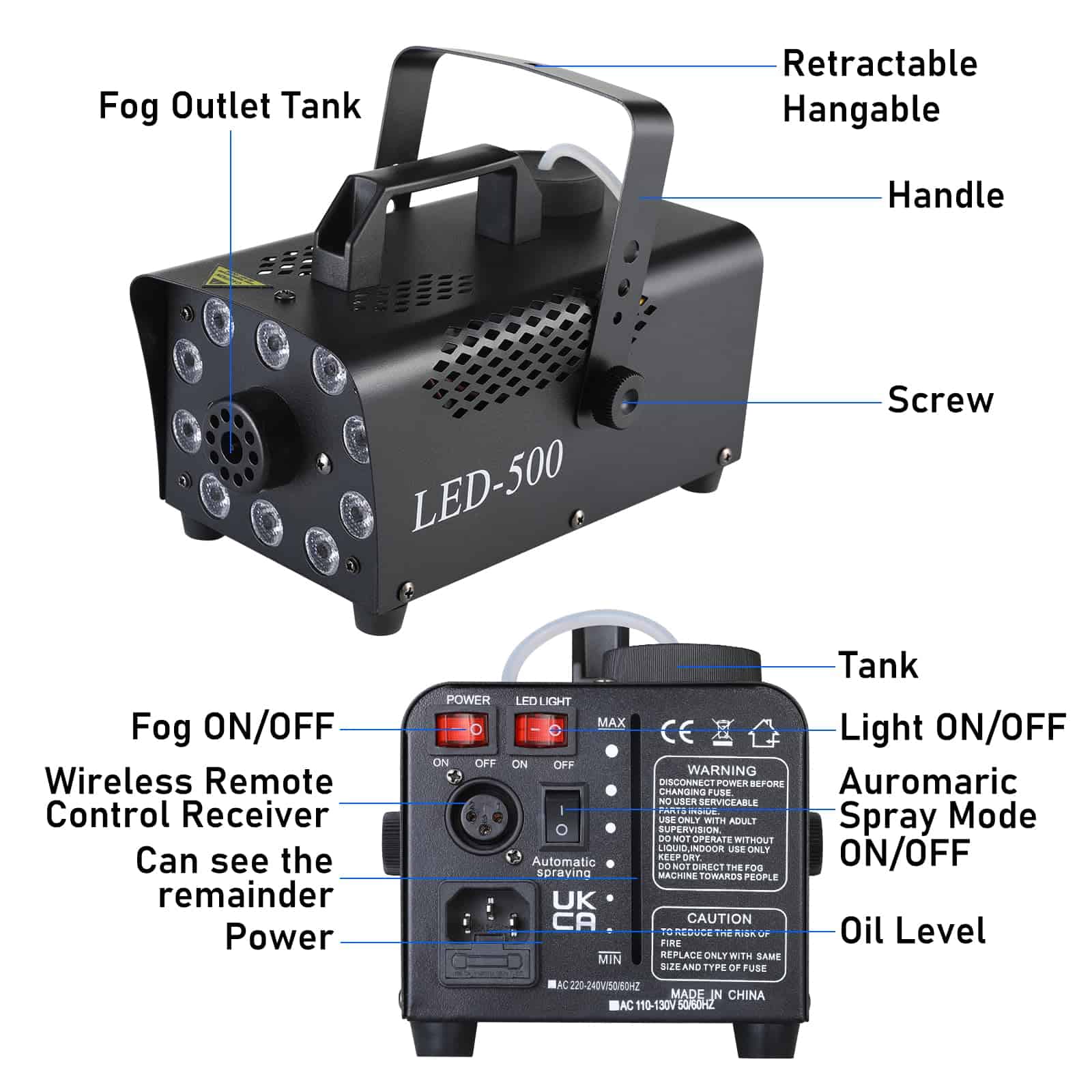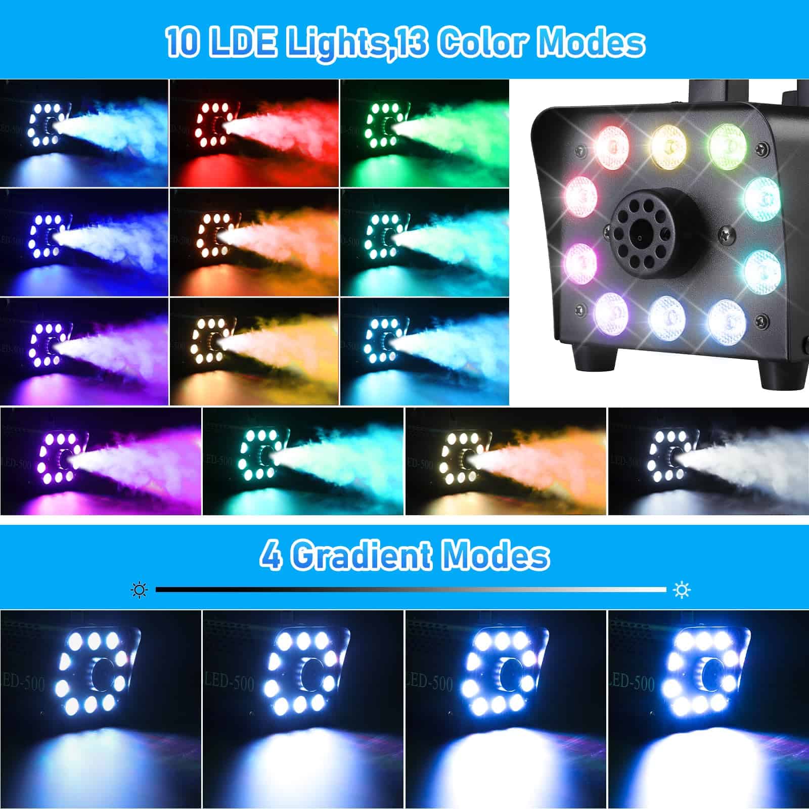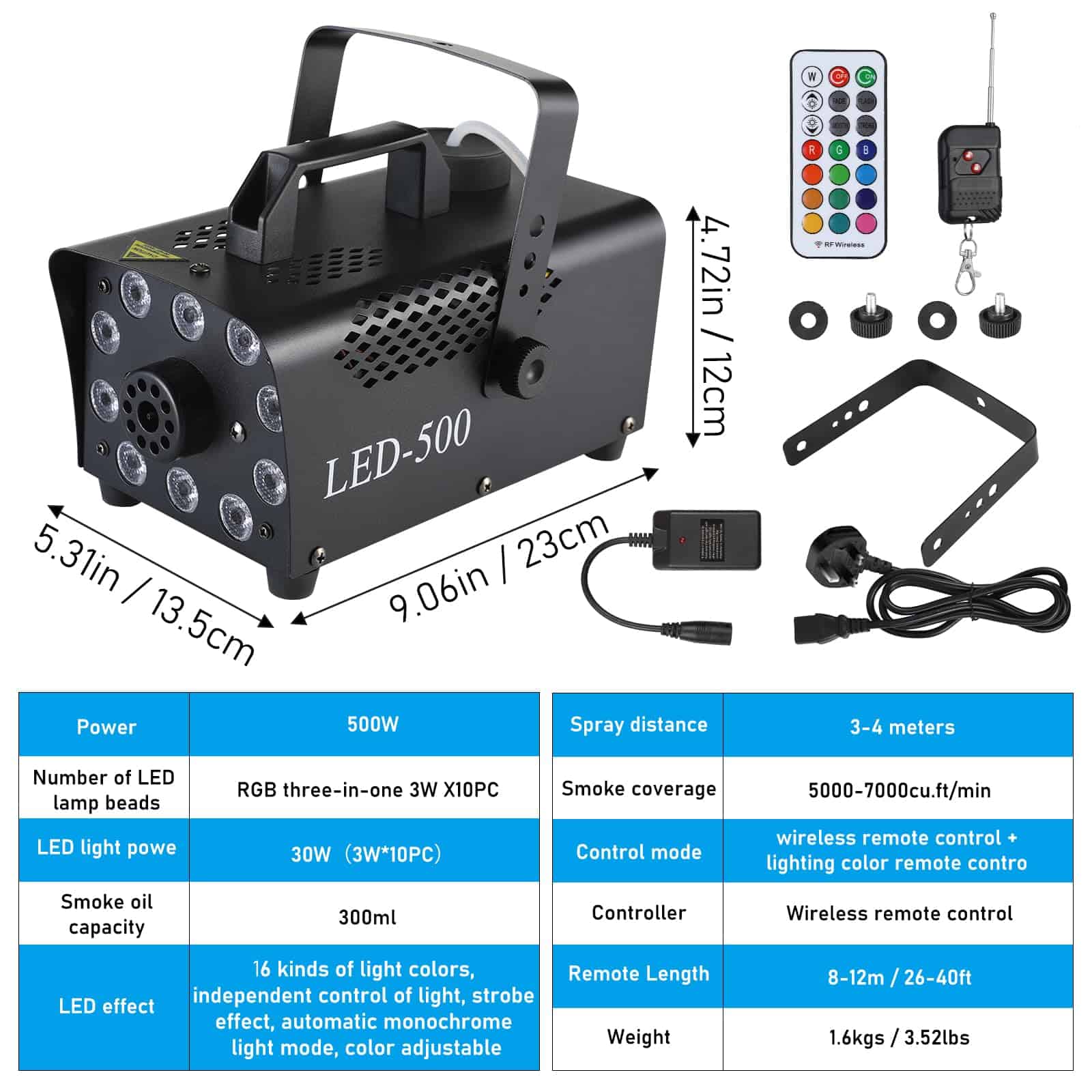 Máquina de Humo, Máquina de Humo con 10 LED, 500W, Luces de