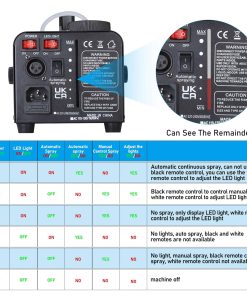 La máquina de humo MAMIZO está fabricada en aluminio y hierro para una mejor disipación del calor, garantizando durabilidad y larga vida útil. Puede crear efectos de calidez, romance, terror, maravilla, y más. Equipada con 2 controles remotos inalámbricos, permite controlar libremente y de forma flexible las luces y el humo de la máquina de humo en un rango de 40 pies. Produce de 5000 a 7000 pies cúbicos por minuto, adecuado para espacios de 9-16 metros cuadrados. Fácil de usar: Después de haber inyectado no más de 300 ml de líquido de humo en el tanque de agua (el contenido del líquido de humo se puede observar usando la barra visual), encienda la alimentación y ponga en marcha la máquina de niebla para precalentar durante 2-3 minutos, y rociar color y humo inodoro durante unos 30 segundos después del precalentamiento, parada automática del calentamiento durante 1 minuto después del primer rociado. Efectos de Color: La máquina de humo cuenta con 10 LED que pueden mostrar 13 colores de luz (ajustables en brillo), y hay 4 modos de cambio de luz para cumplir con los requisitos de su evento (fade, flash, continuo, estroboscópico). Ocasiones: Luces y humo con un ambiente festivo, ideal para todo tipo de festivales especiales: Halloween, bodas, fiesta de cumpleaños, baile de gala, fiesta, Halloween, bodas, escenario, Navidad, club, concierto, grabación de video y actuaciones en escenario, etc. Adecuado como Regalos de San Valentín, Regalos de Halloween, Regalos de Fiesta, Regalos de Cumpleaños, Recuerdos, Regalos de Boda, Regalos para el Día del Maestro, Regalos para el Día de la Madre, Regalos para el Día del Padre, Regalos de Navidad, Regalos para el Día de la Juventud, Regalos de Graduación. Consejos: El líquido de humo no está incluido. Las dimensiones son 9.06″ x 5.31″ x 4.72″ y el peso es de 3.91 lbs.