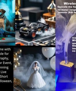 3. Control inalámbrico: Experimenta la conveniencia de controlar la salida de humo a distancia, ajustando el nivel y la duración del humo como desees, ideal para actuaciones en escenario o mejora del ambiente de eventos.
