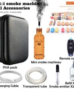 Descripción del producto: Se trata de un pequeño generador de humo portátil diseñado para efectos especiales, cosplay, efectos especiales de humo, etc. Puede utilizarse para mejorar la producción y los efectos de actuación de películas a través del entorno de producción. Lista de productos: Máquina de humo 1 Boquilla 1 Manguera 1 Cargador/cable de datos 1 Aceite atomizante 1 (hecho de glicerol: propilenglicol/1:1)