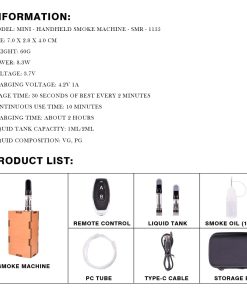 Esta es una pequeña generadora de humo portátil, diseñada para efectos especiales, cosplay, efectos de humo, etc.