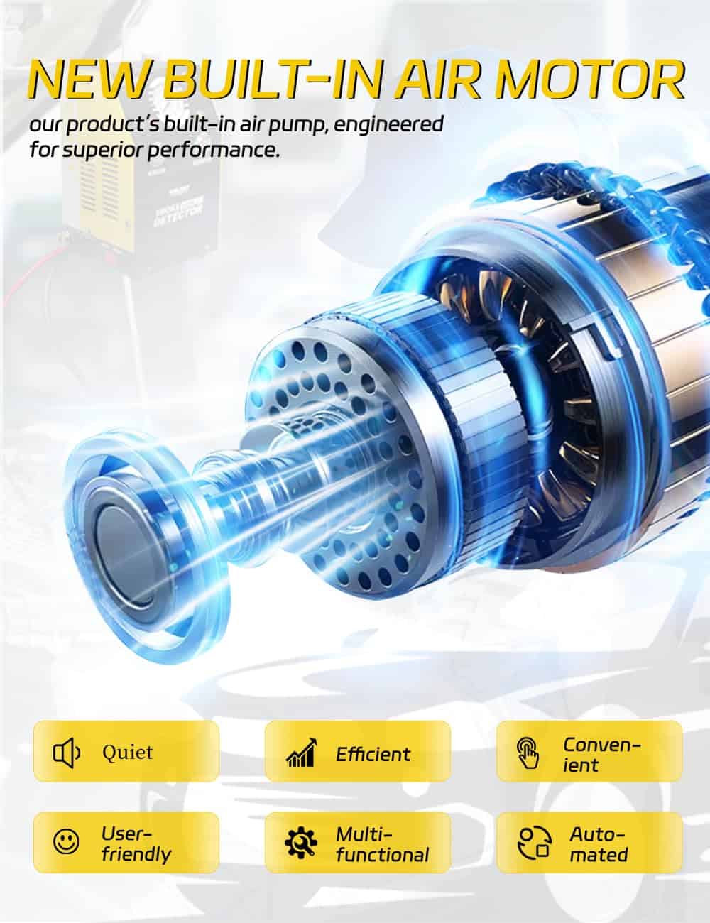 4. Bomba de Aire Incorporada La máquina de humo SD302 Solary tiene su propia bomba de aire y generador de humo, no es necesario comprar máquinas de aire adicionales. Utilizamos materiales de alta calidad, después de muchas pruebas, el humo creado por la máquina es no tóxico, no te preocupes por dañar tu cuerpo y vehículo, por favor, utilízalo con confianza.