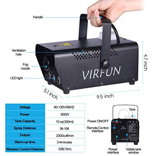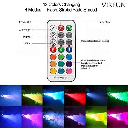 Máquina de Humo VIRFUN, Luces de Efecto de 12 Colores y
