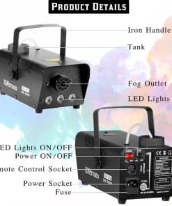 Máquina de Humo XWSTGEQ-500W Portátil con Luces LED Rojas,