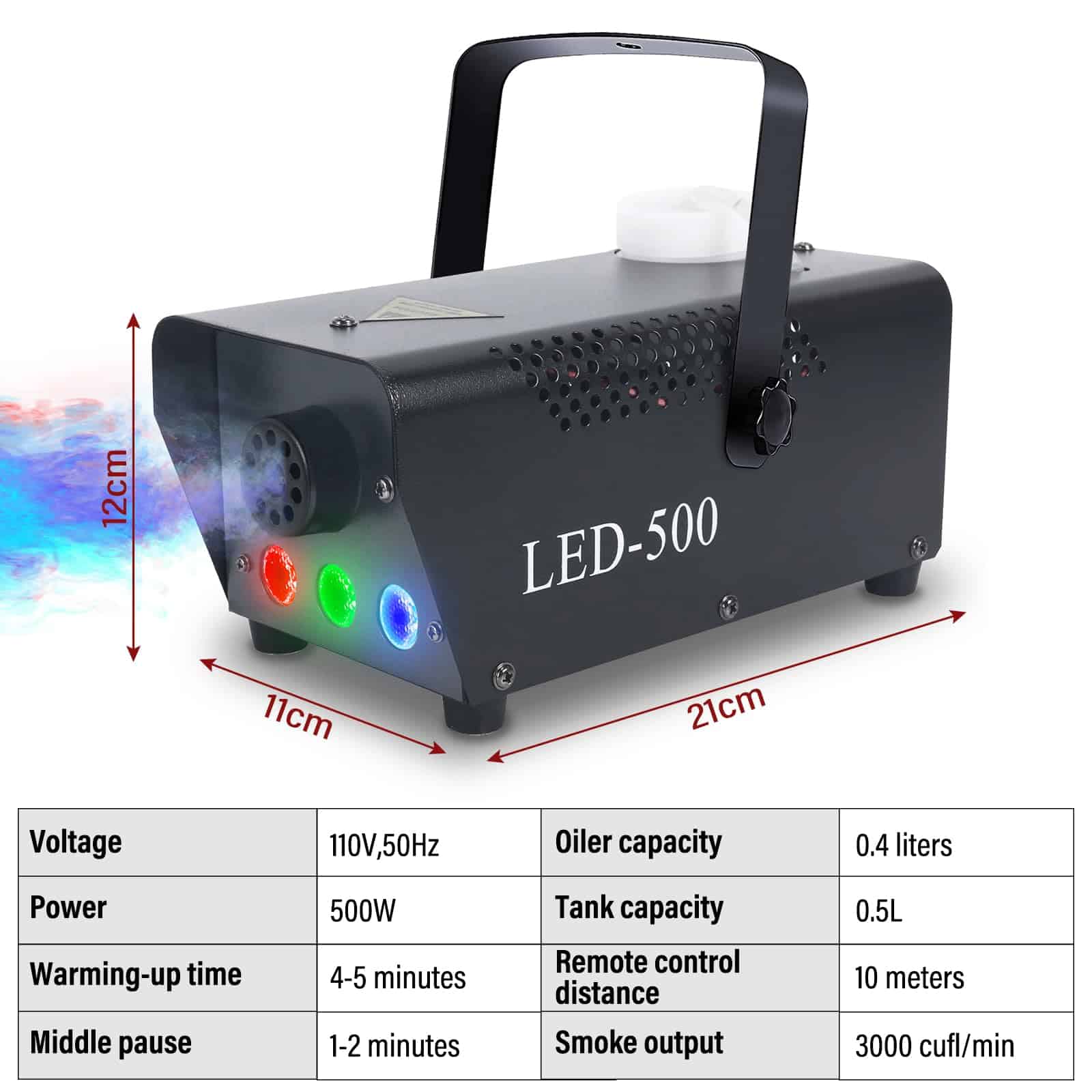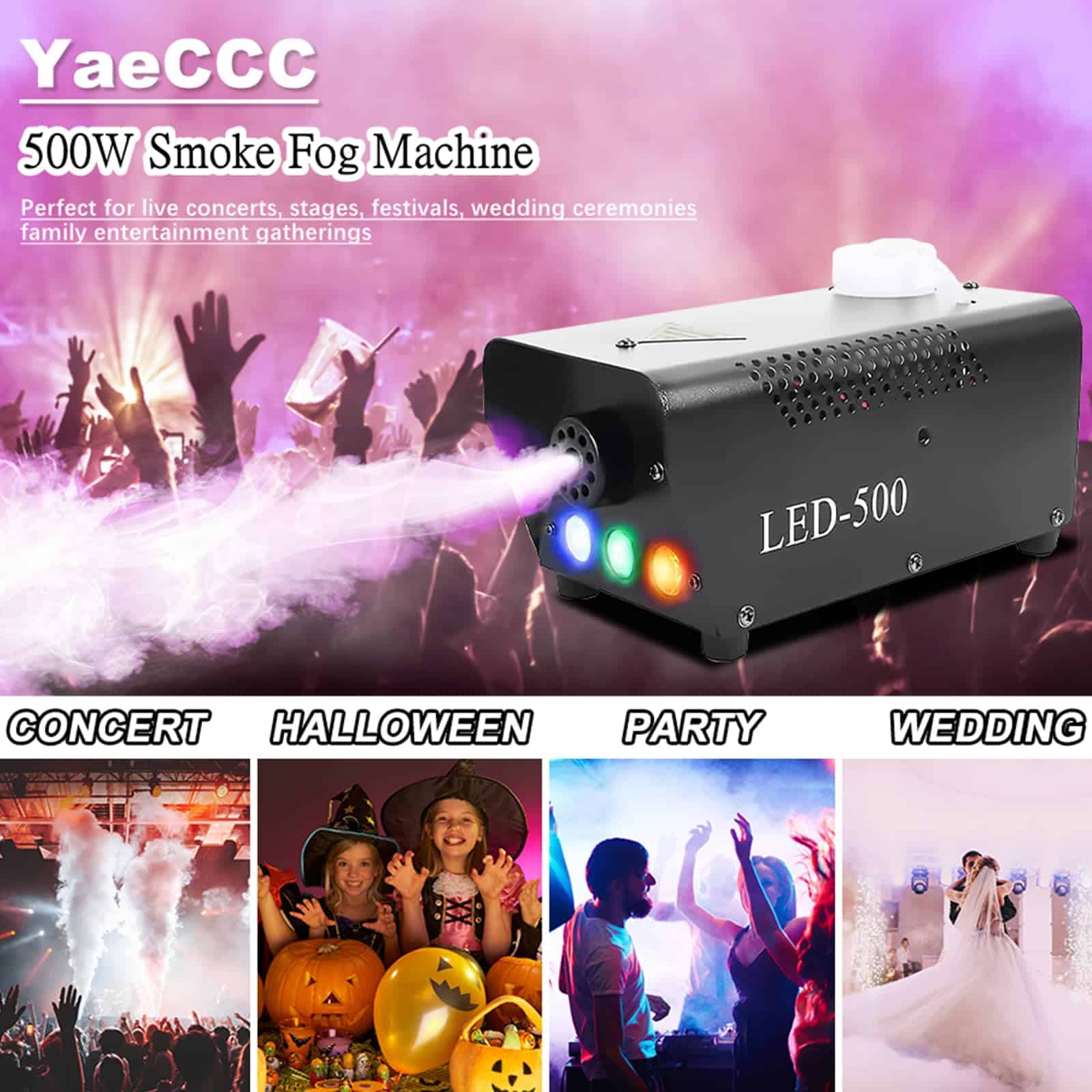 Máquina de Humo YaeCCC, 500W Máquina de Humo con Luces LED