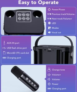 1. CALIDAD DE SONIDO EXCEPCIONAL ¡Eleva tu experiencia de karaoke con nuestra mini máquina de karaoke portátil! Con 2 micrófonos inalámbricos, ofrece una calidad de sonido excepcional. El controlador de audio avanzado y el DSP garantizan un audio claro y libre de distorsiones. Ideal para juegos, música y noches de cine, ¡es una forma fantástica de mejorar tu entretenimiento! 2. 7 EFECTOS DE VOZ DIVERTIDOS ¡Eleva la actuación vocal de tu hijo con 7 emocionantes mejoras de voz: karaoke, sonido original, eco, voz masculina, voz femenina y de niño, sonido mágico. Para activar los efectos de acompañamiento, mantén presionado el botón de efecto del micrófono durante 3 segundos para alternar entre los modos de voz, permitiendo experiencias de canto variadas! 3. VIDA DE BATERÍA DURADERA Alimentado por una batería recargable de 1500mAh, garantiza hasta 3-5 horas de diversión sin parar. Perfecto para fiestas, reuniones familiares y citas para jugar. Cuando estés de fiesta, lleva contigo este altavoz Bluetooth portátil para mantener la diversión. 4. REGALO IDEAL Perfecto para niños de 3 a 12+ años, la máquina de karaoke BESCOST es un regalo excelente para cumpleaños, Navidad o Halloween. Ofrece diversión sin fin al mismo tiempo que fomenta la creatividad y un amor duradero por la música. Su portabilidad la convierte en un compañero de canto ideal para cualquier persona que persiga sus sueños de la fama! 5. PORTÁTIL Y FÁCIL DE USAR Esta linda máquina de karaoke no solo adopta el último chip de Bluetooth 5.0, sino que también admite tarjeta TF, conexión USB flash y auxiliar. Su naturaleza compacta la hace ideal para karaoke espontáneo, permitiéndote cantar en cualquier momento y lugar, y replicando sin esfuerzo la emoción de un bar de karaoke.