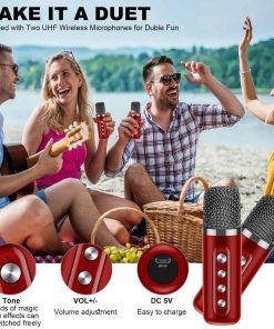 Máquina de Karaoke con 2 Micrófonos Inalámbricos, Altavoz