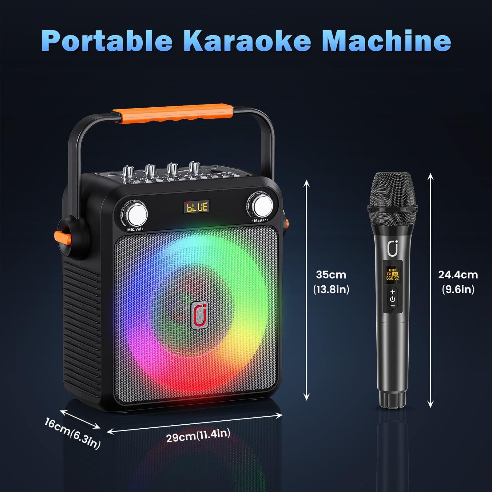 5. Fascinante Espectáculo de Luces LED: El sistema de PA portátil está diseñado con 9 efectos de iluminación. Las luces LED coloridas crean una atmósfera de fiesta agradable, romántica y enérgica para ti. Moviendo al ritmo de la canción, tú y tus amigos pueden disfrutar de una experiencia visual de karaoke definitiva. Perfecto para reuniones familiares, transmisiones en vivo al aire libre y otras ocasiones.